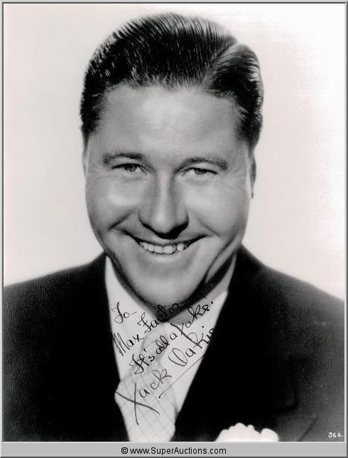 Jack Oakie Autographed 8 x 10 Nitrate Negative / "To Max Factor It's All Fake! Jack Oakie" / Includes (1) 8 x 10 Black and White Photograph and (1) 3.75 x 4.75 Black and White Photograph of Jack Oakie and Max Factor