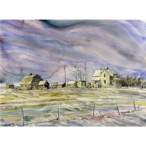 Canadian [b. 1951] ALBERTA FARM IN WINTER; 1981 watercolour on paper 22 x 30 in. (55.9 x 76.2 cm) signed & dated