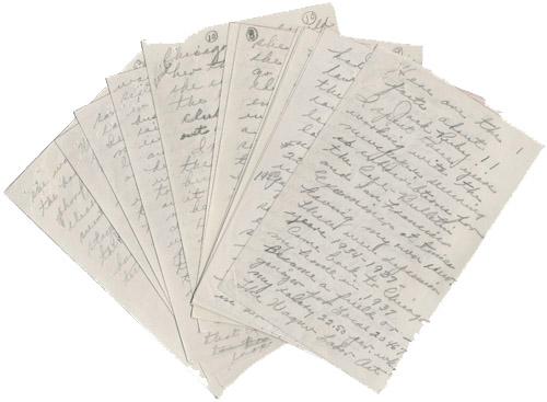 Autograph manuscript signed ''Jack Ruby'' in pencil on the first page of fourteen, accompanied by a notarized statement by Jack's brother Earl Ruby on 22 December 1992, that this is an ''autographed, unpublished, manuscript written by my brother Jack Ruby from jail at my request after Jack was convicted of murder and sentenced to death…The manuscript was to be used by Jack's lawyers if a new trial was granted to establish his character as not being capable of pre-meditated murder and that his act of November 24, 1963 was spontaneous and born of anguish and grief. A new trial was granted, but Jack died before the new trial could commence.'' In part, ''…Here are the facts about Jack Ruby!! I spent three years working with the newspapers securing subscriptions for the Call-Bulletin and San Francisco Examiner at times having my own crew. These were depression years 1934-1937. Came back to Chicago my home in 1937. Became a field organizer for Local 20467 my salary 22.50 per wk. The Wagner Labor Act had just become a law in 1937, and thought this is what the country was for, legitimate organized labor. My checks never had gone over $22.50. I left the union the latter 1940 part of 1939-Voluntarily...'' 4'' x 6'' pages in excellent condition with very legible writing.