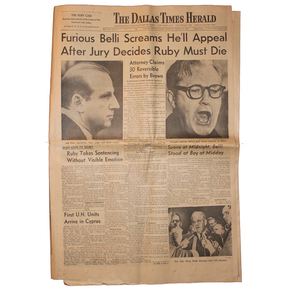 Rare ''Dallas Times Herald'' 15 March 1964 Jack Ruby Trial Newspaper -- ''...Jury Decides Ruby Must Die''