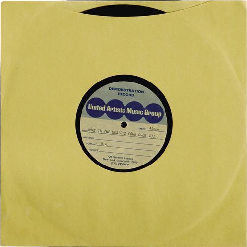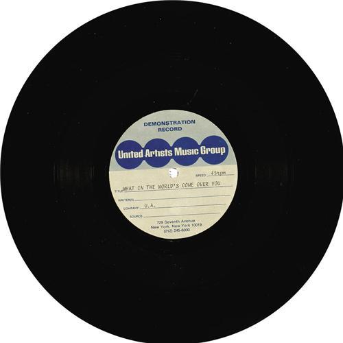 <B>Jack Scott "What In The World's Come Over You" 10" 45-rpmAcetate United Artists Music Group (1960).</B></I> One-sided acetate of Scott's most enduring hit, which peaked at #5 on Billboard's Pop charts in 1960. Condition: VG-EX 6. <I>From the GRT Collection</B></I>