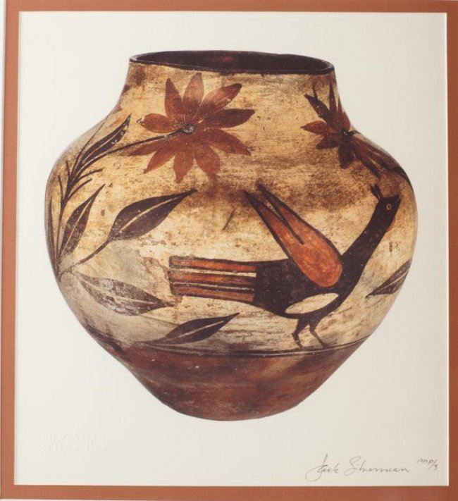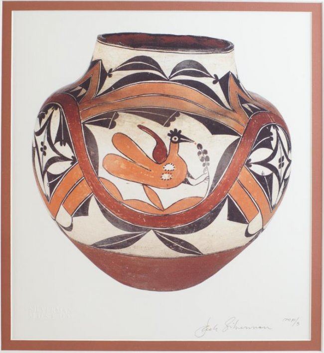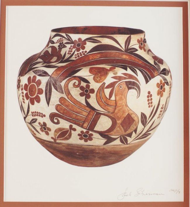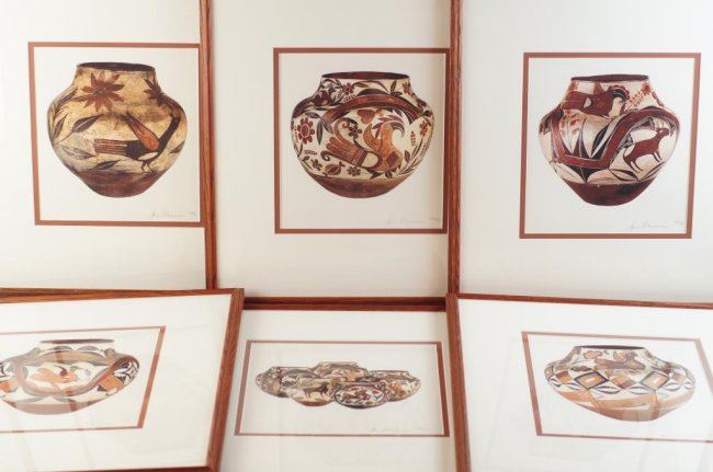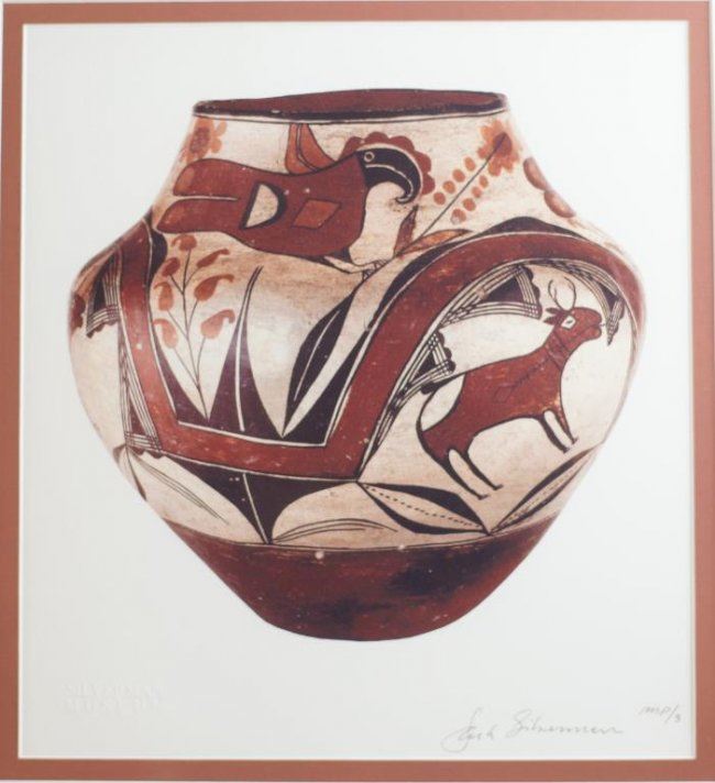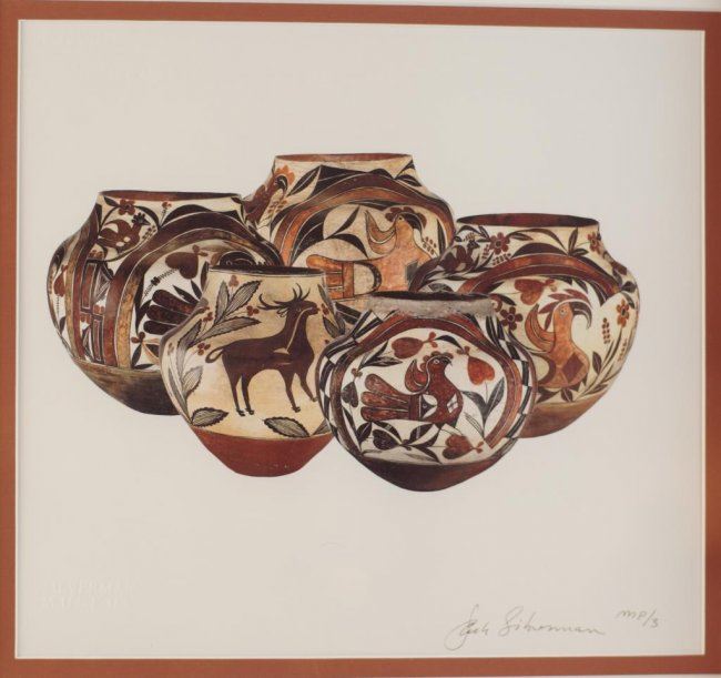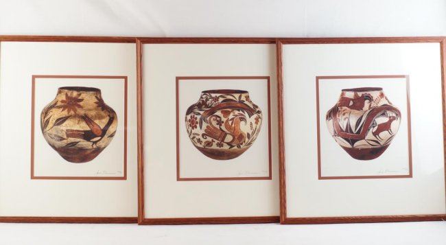 Artist proofs signed in the margin with watermarks depicting - Native American pots measure approx. 11.25" x 10.25" visible - framed and matted behind glass