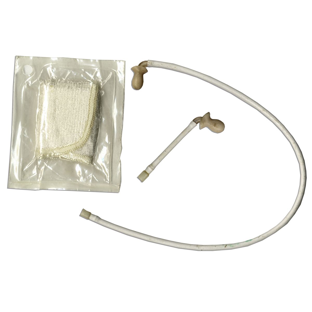 Jack Swigert's own flown earpiece and ear tube with a small piece of gauze with a velcro square affixed to it. Two pieces were worn while flying, to communicate with fellow astronauts and the Houston space station. In a plastic bag with ''Jack's Suit'' written by hand to a piece of tape. Very good condition. With an LOA from Swigert's sister.