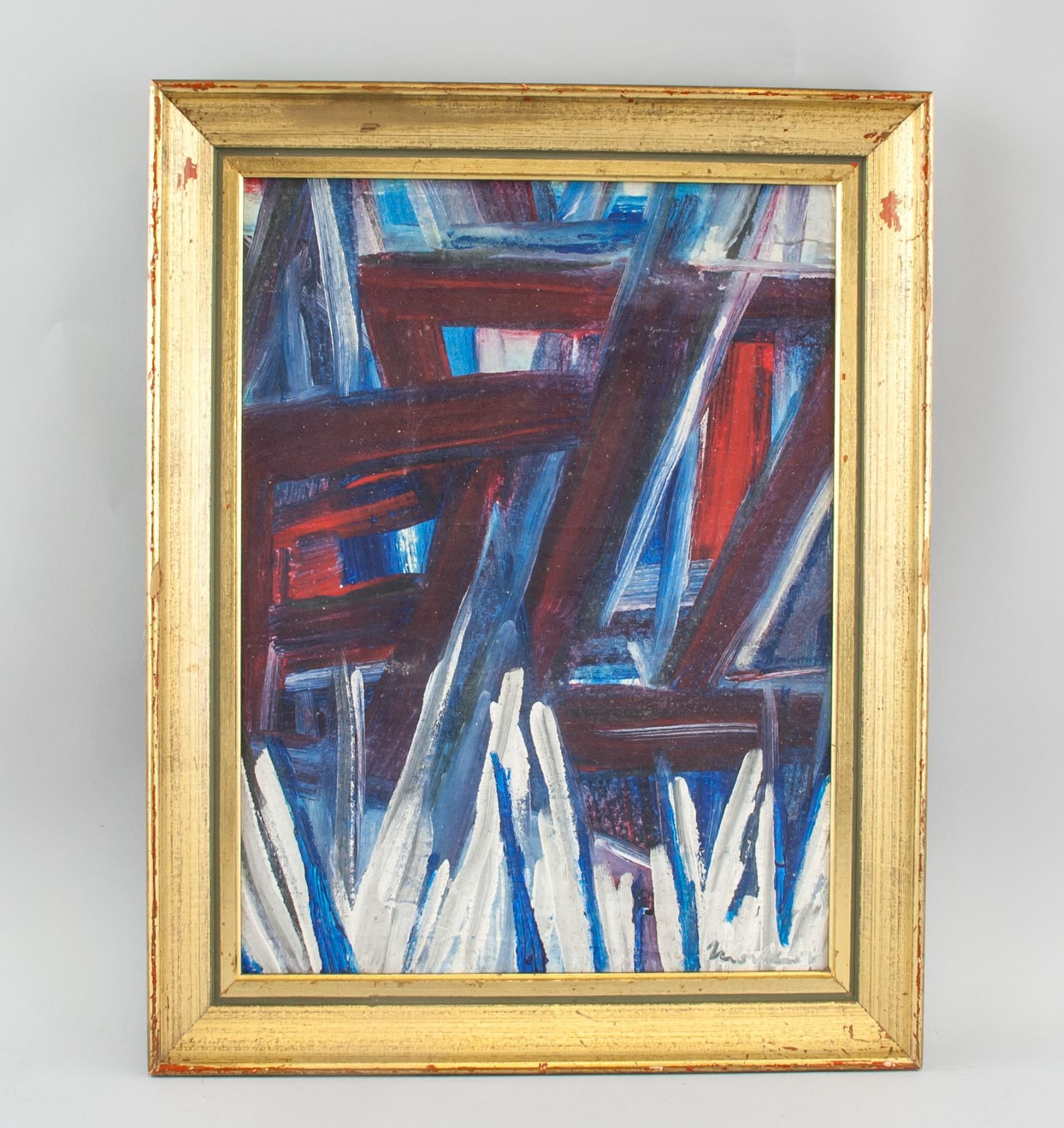 Oil on canvas abstract painting, signed and attr. Jack Tworkov (American, 1900-1982) on lower right corner. 15.5 x 11.5 inch (39.37 x 29.21 cm). An early member of the New York School and a first-generation Abstract Expressionist, Jack Tworkov painted with gestural brushstrokes, emphasizing texture and line. His most characteristic work contains flashes of color against muted, monochromatic backgrounds, documenting his gestures and drawing attention to pigment and medium. In the second phase of his career, he abandoned his expressionistic practice for a more theoretical one and began to employ grid-like structures, geometric patterns, and other elements of Minimalism, although often deliberately damaging and deteriorating his paintings. PROVENANCE: Southern Ontario Estate