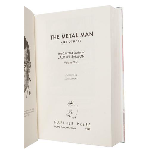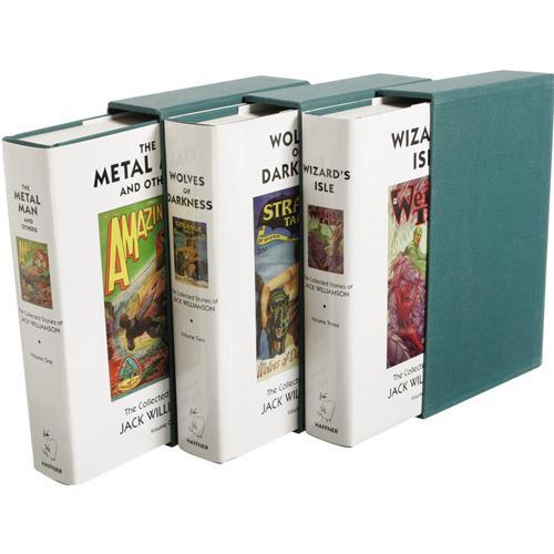 <B>Jack Williamson: Signed Limited Edition of<I> The Collected Stories of Jack Williamson</B></I> Volumes One-Three.</B></I> (Royal Oak: Haffner Press, 1999-2000), limited first edition of 100 copies, in matching green cloth slipcase as issued. Includes:<BR><B><I>The Metal Man and Others.</B></I></B></I> 79/100, signed and numbered on a special limitation page bound in front, 541 pages, color pictorial end papers, green cloth with gilt titles, 8vo (6.25" x 9"), as new in a fine unclipped jacket.<BR><B><I>Wolves of Darkness.</B></I></B></I> 99/100, signed and numbered on a special limitation page bound in front, 529 pages, color pictorial end papers, green cloth with gilt titles, 8vo (6.25" x 9"), as new in a fine unclipped jacket.<BR><B><I>Wizard's Isle.</B></I></B></I> 78/100, signed and numbered on a special limitation page bound in front, 540 pages, color pictorial end papers, green cloth with gilt titles, 8vo (6.25" x 9"), as new in a fine unclipped jacket.` <I>From the Ventura Collection.</B></I><BR><BR><b>Shipping:</b> Books & Catalogs (<a target="_blank" href="http://www.heritageauctions.com/common/shipping.php">view shipping information</a>)