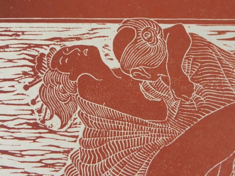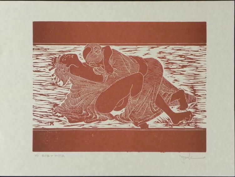 Here is a provocative woodcut, done in the style of classic Japanese erotic art. * Artist: JackSignature: Lower rightMedium: Woodcut on paperEdition: Trial ProofOther markings: Dedication to Bob & MoyaImage size: 9 x 12 inchesSheet size: 12 x 16 inchesCondition: Excellent
