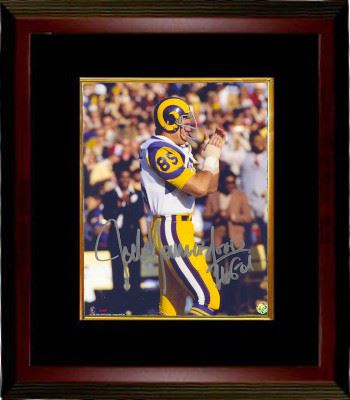 Jack Youngblood played defensive end for 14 years for the Los Angeles Rams. He was a five-time consensus All-Pro and a seven-time Pro Bowl selection and was inducted to the Pro Football Hall of Fame in 2001. Jack Youngblood has hand autographed this Los Angeles Rams 8x10 Photo with HOF 01 inscription. Certificate of Authenticity from Athlon Sports Collectibles. Custom Black Mat and Premium Mahogany Color Framed as shown.