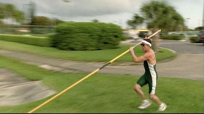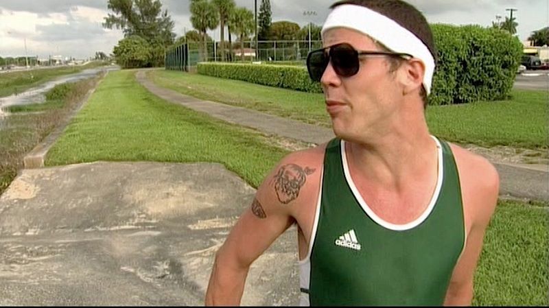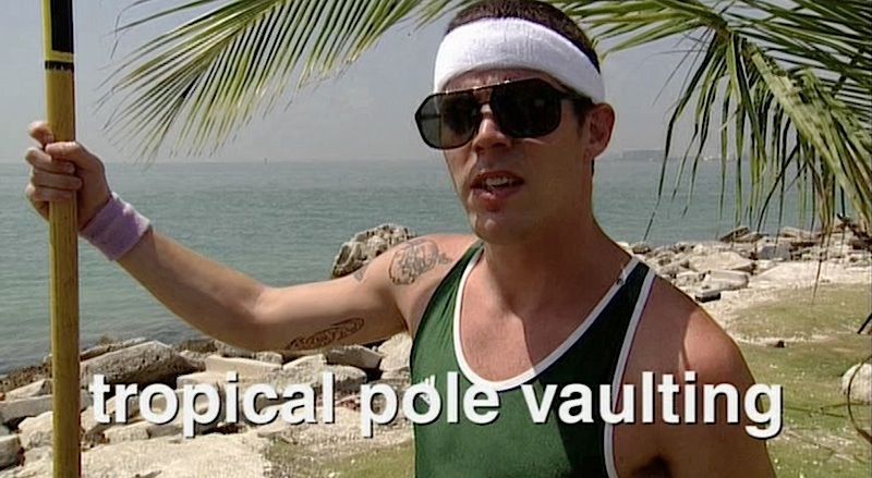 (Paramount Pictures, 2002) This unitard was acquired by the production for use by Steve-O during filming of the "Tropical Pole Vaulting" stunt. The unitard was made by Adidas and features the "adidas" logo on the right chest. Minor wear from use is present, size large.