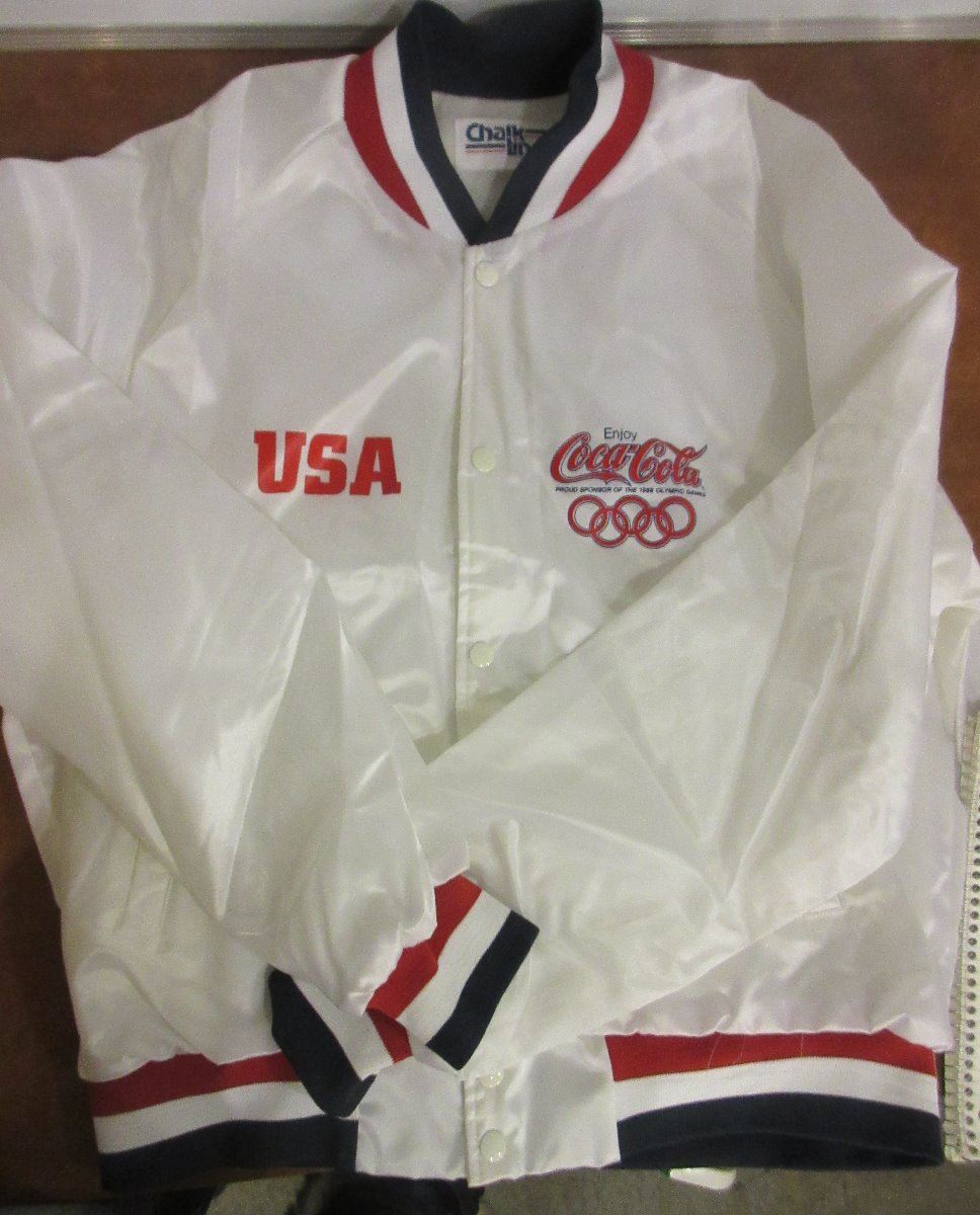 Vintage 80's Coca Cola Sponsor of 1988 Olympics Chalk Line Satin Jacket