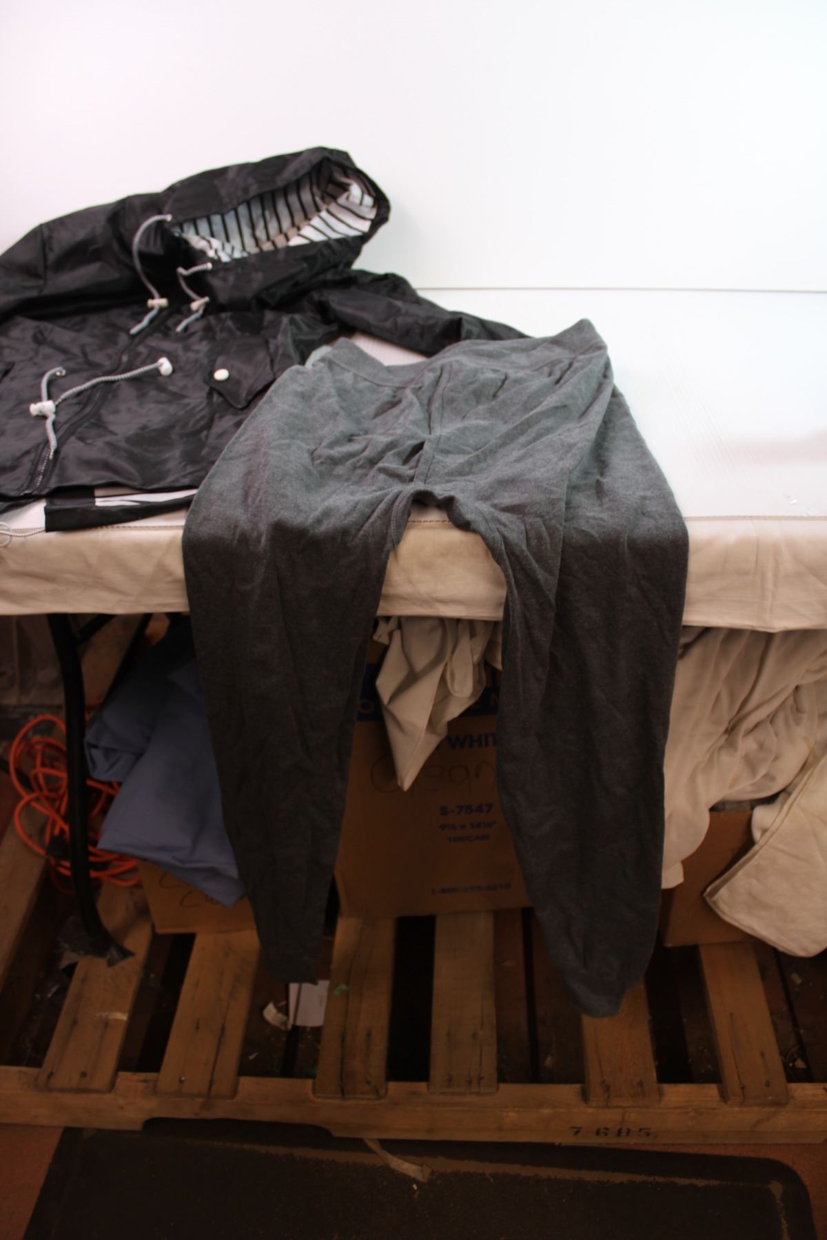 Jacket(M), Vest (XL), Shorts(?), and Pants(XXL)