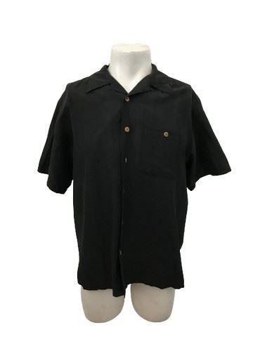 Jackie Brown (1997) - Ordell Robbie (Samuel L. Jackson) test WTF branded short sleeve Havana style, black, linen shirt. Approx size L.