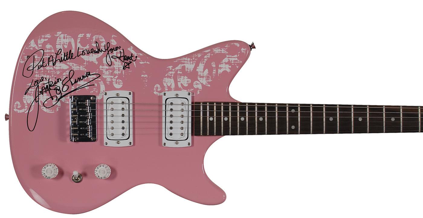 A First Act ME4211 electric guitar, signed on the body in black felt tip, “Put a Little Love in Your Heart, Jackie DeShannon”; Put a Little Love in Your Heart album, signed on the front cover in black felt tip; and sheet music to ‘I Don’t Need You Any More,’ signed on the cover in black felt tip. In fine condition.
