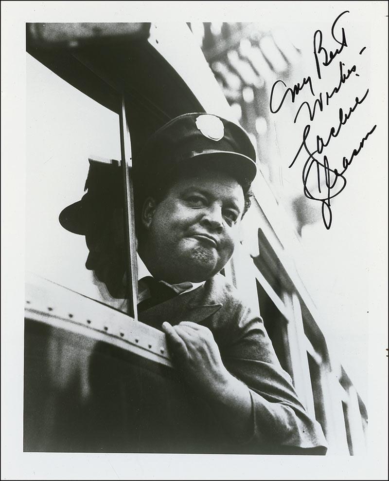 Glossy 8 x 10 photo of Ralph Kramden in his bus driver’s uniform, signed in black felt tip, “My Best Wishes, Jackie Gleason.” In fine condition with trivial creases to upper right corner. Pre-certified PSA/DNA and RRAuction COA.