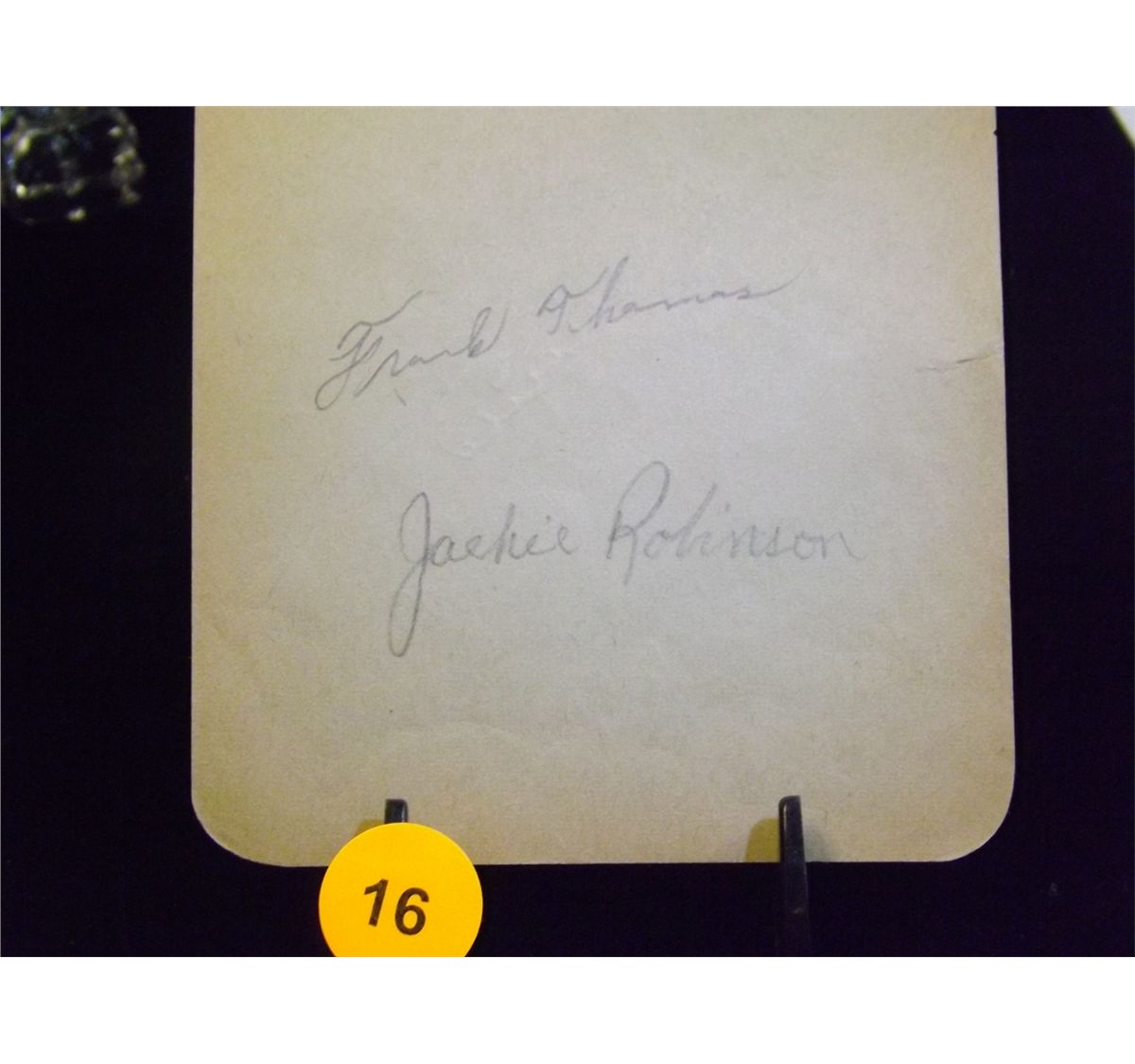Jackie Robinson Die Cut Autograph with Frank Thomas Autograph and Carlos B. Autograph. Appraised or estimated retail value $1000. COA by Christopher Morales. All Sales Final. Please see terms and conditions of auction.