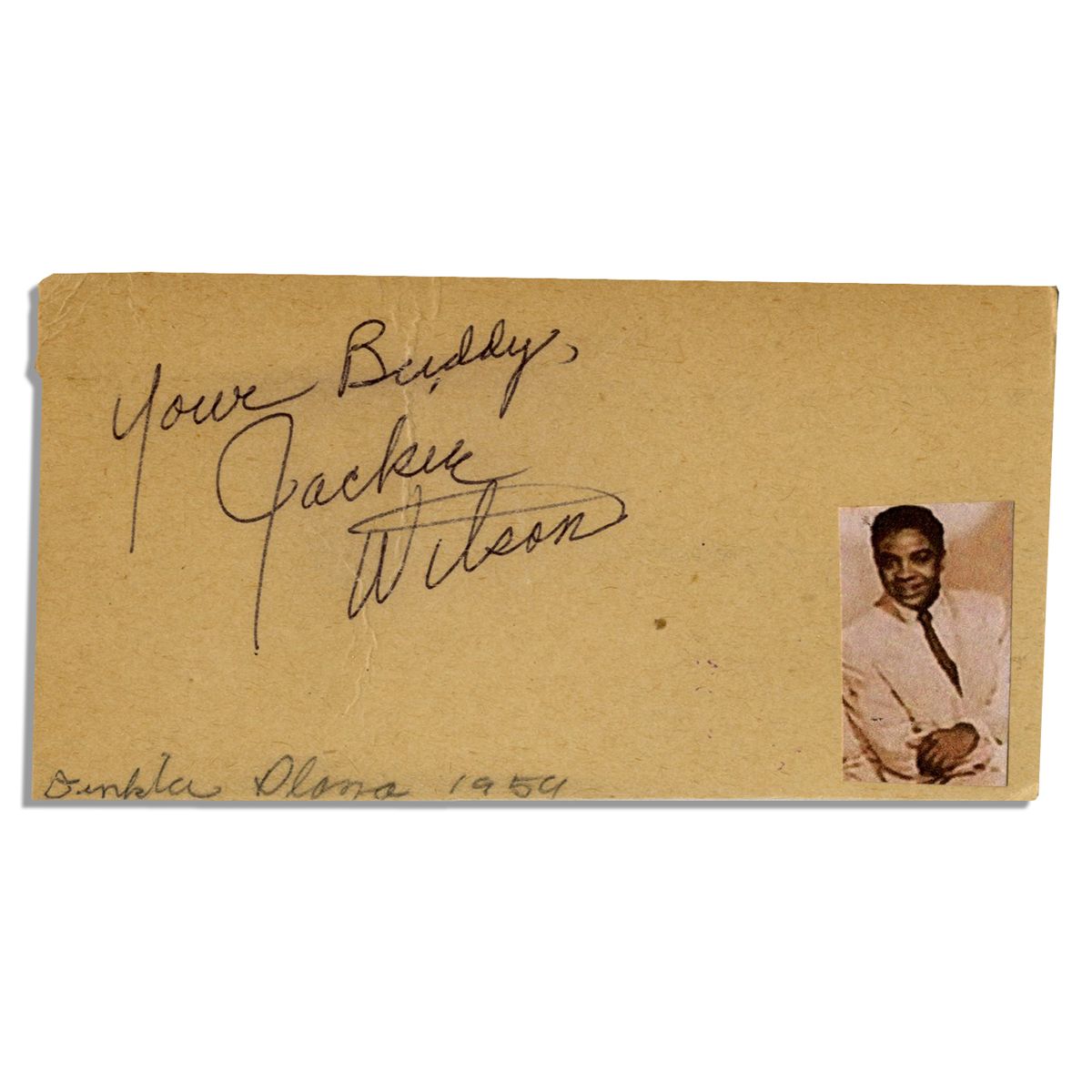 Rock 'n Roll Hall of Fame Singer Jackie Wilson Signs, ''Your Buddy, Jackie Wilson'' in Black Ink to a 4.25'' x 2.25'' Card -- Very Good