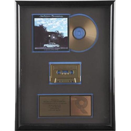 <B>Jackson Browne "Late For The Sky" RIAA Gold CD Award.</B></I> A gold sales award presented to Record & Tape Traders to commemorate the sale of more that 500,000 cassette and CD copies of <I>Late For The Sky.</B></I> Framed to an overall size of 13" x 17" and in Excellent condition.<BR><BR><b>Shipping:</b> Framed - with Glass, Small (<a target="_blank" href="http://www.heritageauctions.com/common/shipping.php">view shipping information</a>)