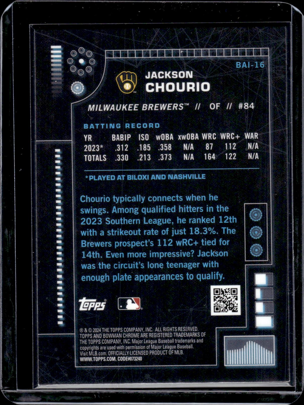 Jackson Chourio AI Refractor 2024 Bowman Chrome #BAI-16