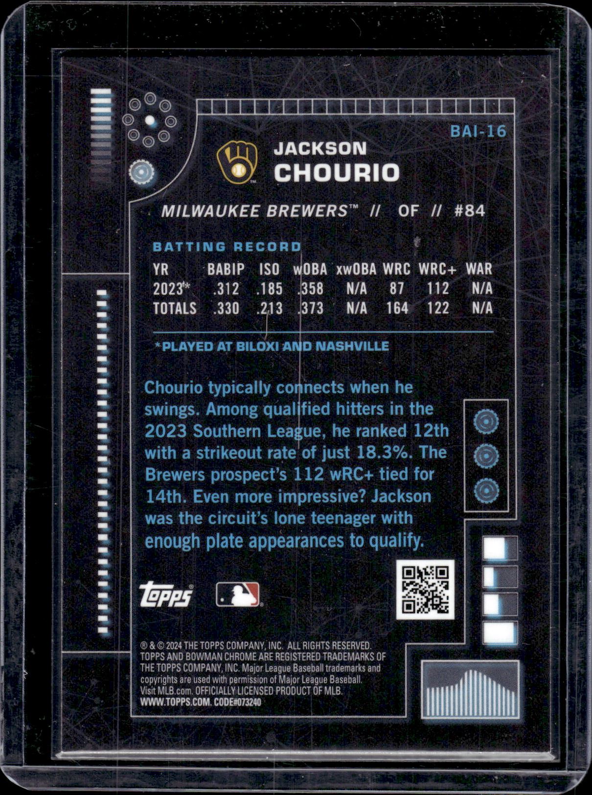 Jackson Chourio AI Refractor 2024 Bowman Chrome #BAI-16