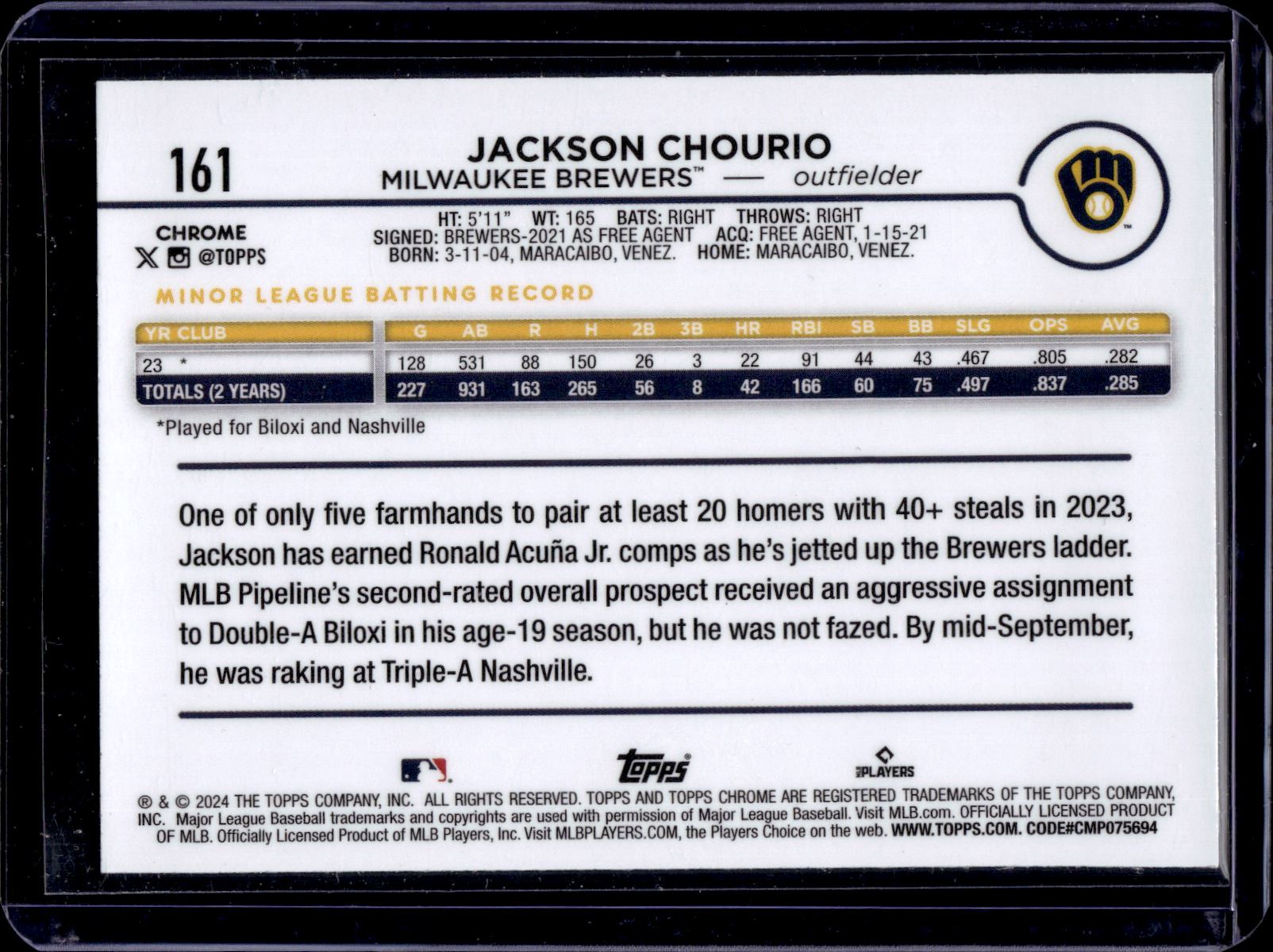 Jackson Chourio Raywave Refractor RC 2024 Topps Chrome #161