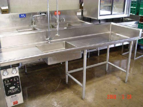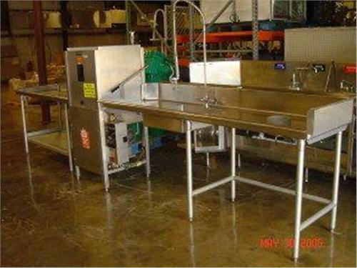 SN 11328. Includes left 62" SS Dishtable & right 90" SS Dishtable w/ Sink, spray nozzle & trash hole