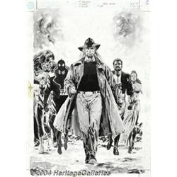 Jackson Guice - Original Cover Art for Resurrection Man #25 (DC, 1999). The Resurrection Man leads the Ray II, Vigilante V, and the other members of the Forgotten Heroes through a path filled with burning carnage. Butch Guice capitalizes on the gray tone technique to create gritty and sooty textures, as well as flickering light effects, for this dramatic scene. The paper measures an overall size of 12" x 17", with an image area of 10.25 x 15.5". There are no logo or type elements. The art is in excellent condition. Important notice: Heritage usually auctions material at the rate of 200-250 lots per hour. On some occasions eBay Live bid software or the Internet may not be able to keep up with the pace of the auction. We recommend placing a realistic absentee bid now as insurance to avoid disappointment. Occasionally the auctioneer may eliminate or reject an eBay Live bid, and the auctioneer may also reopen a lot after the close of the eBay live bidding (usually because we missed an audience bid), and may reject your bid even if it shows you as the winning bidder. By bidding via eBay Live, you agree that Heritage may award the lot to another bidder at its sole discretion under the circumstances described above or any other reasonable circumstances. Since eBay bids are not shown to us until we open the lot on the floor, we treat those bids just like floor bids. In most cases the floor responds before the eBay bid is presented to us, due to Internet lag time, so for consistency we have made it a policy that floor bids are always considered first over tie eBay live bids. Also please note that all Heritage lots purchased through eBay Live carry a 20% Buyer's Premium. Please make sure you read the Terms and Conditions before you bid.