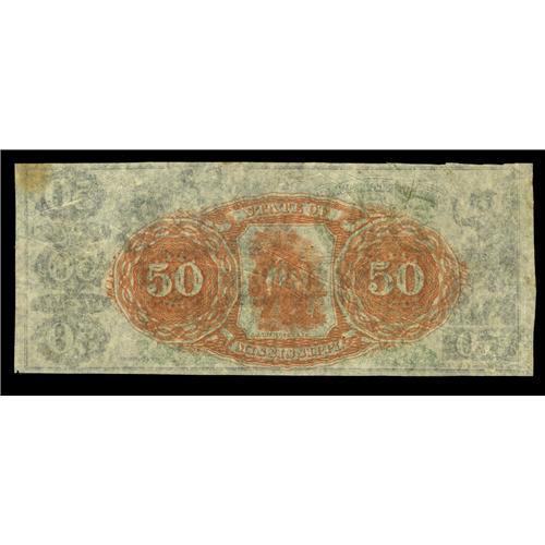 <B>Jackson, MS- State of Mississippi</B></I> $50 186_ Cr. 49 Kraus 49613<BR>Pre-printing paper folds are found in the paper of this plate letter C remainder that shows foxing in one corner. <B>Crisp Uncirculated.</B></I>