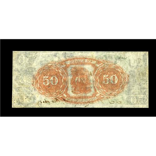 <B>Jackson, MS- State of Mississippi</B></I> $50 Apr. 1, 1865 Cr. 49 Kraus 49613<BR>This is a colorful note with even circulation. A small amount of ink erosion and a couple of pinholes are spotted. <B>Fine-Very Fine.</B></I>