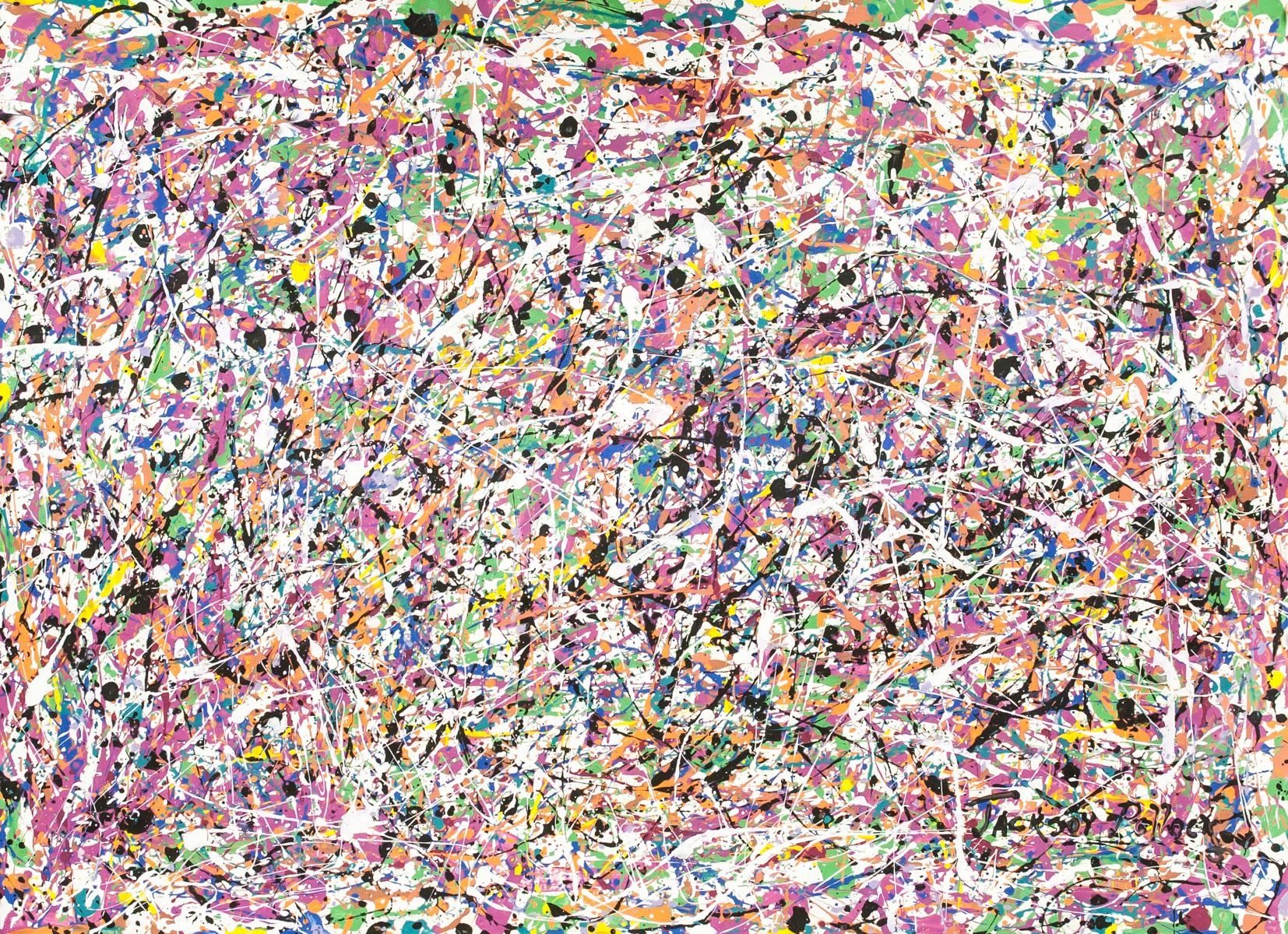 Acrylic on canvas. Featuring abstract composition. Signed "Jackson Pollock" in the bottom right corner. Attributed to Jackson Pollock (1912-1956, American). 115 x 163 cm. Provenance: This lot carries limited provenance from a Toronto estate