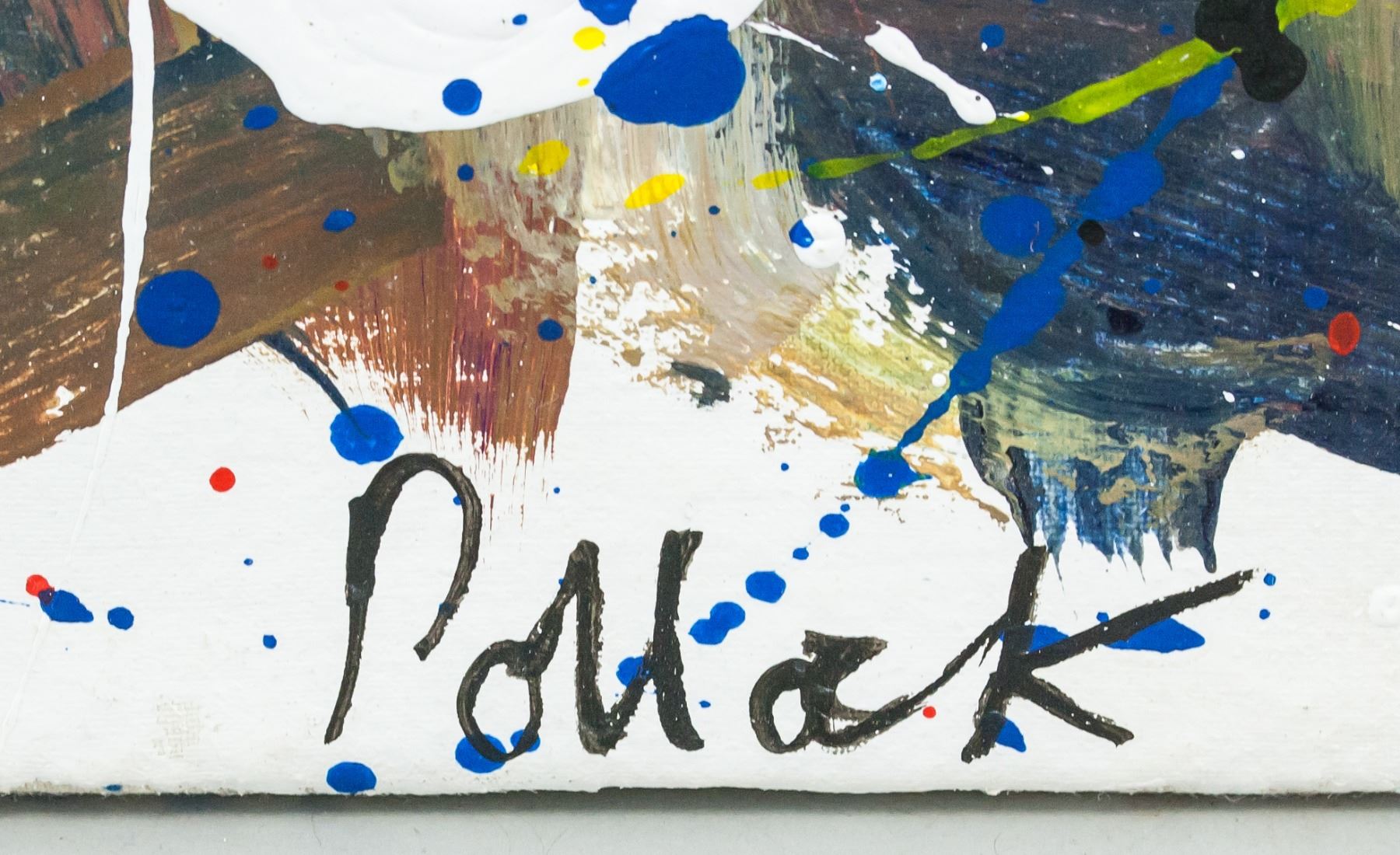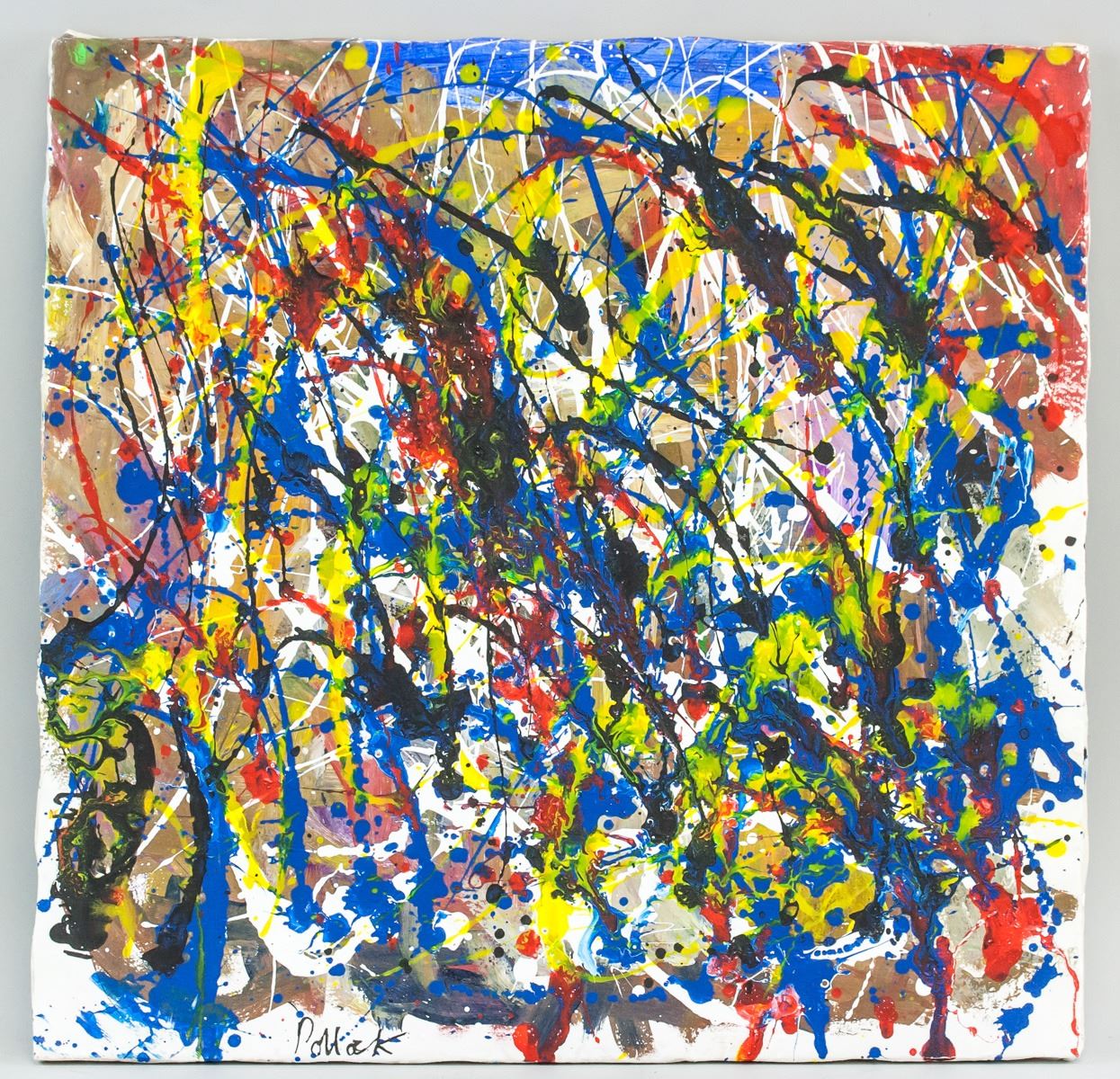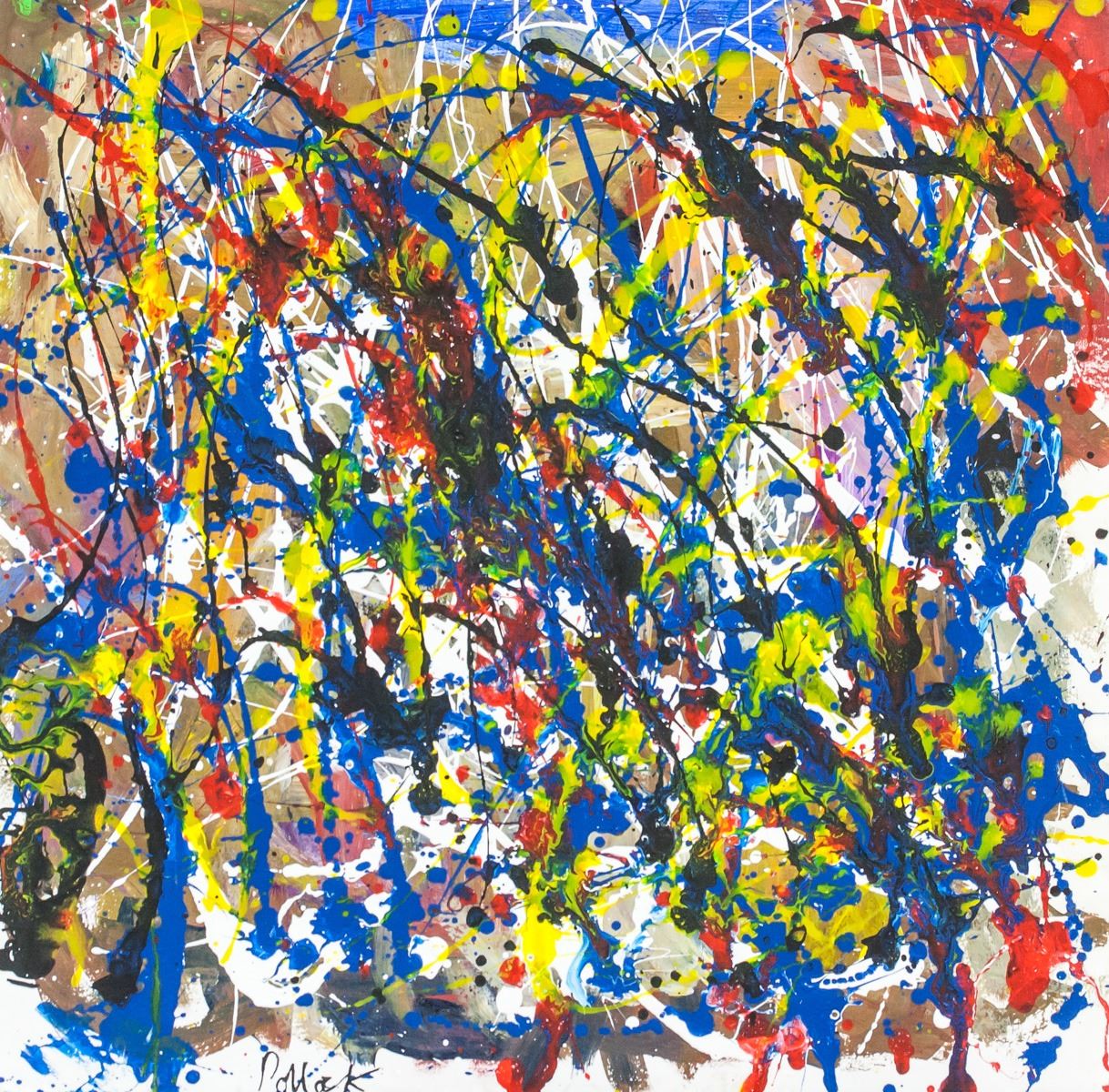 Oil on canvas. Featuring abstract composition. Signed "Pollock" to the bottom left. Attributed to Jackson Pollock (1912-1956, American). 45 45 x 46 cm (17.75 x 18 in)