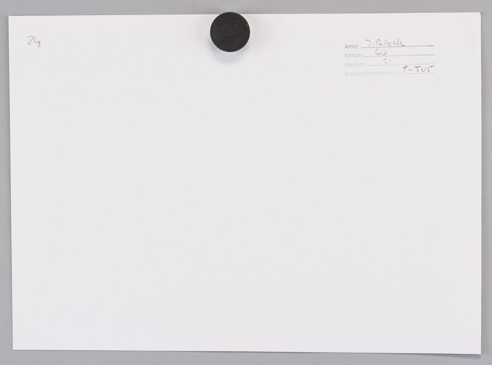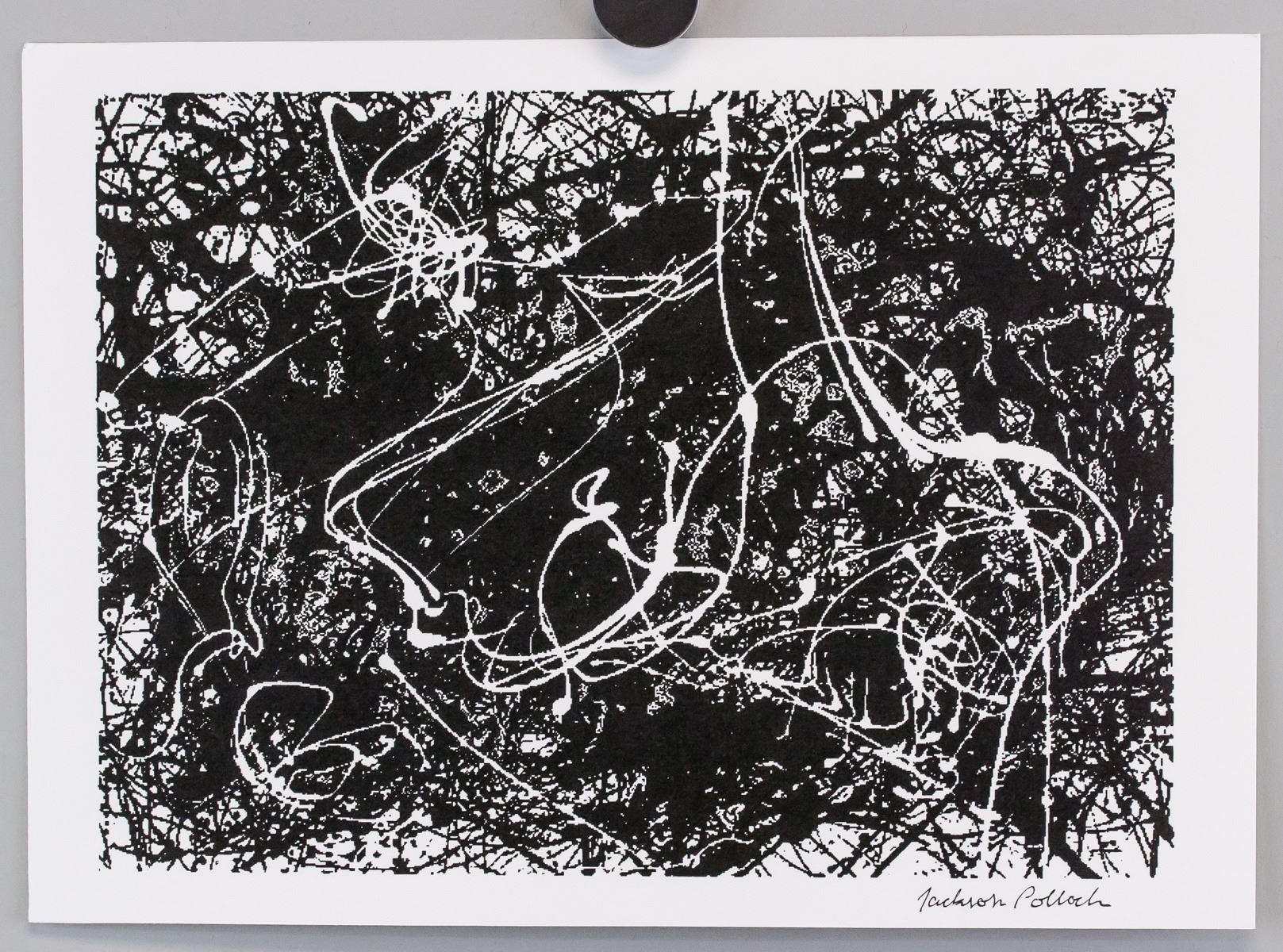 Silkscreen on paper. Featuring abstract composition. Signed "Jackson Pollock" in the bottom right corner. "24" inscribed on verso. "Artist: J. Pollock Edition: 60 Medium: Sl Registration number: P-505" stamped and inscribed on verso. Attributed to Jackson Pollock (1912-1956, American). 21 x 29 cm (8.25 x 11.5 in). Provenance: This lot carries limited provenance from a Southern Ontario estate.