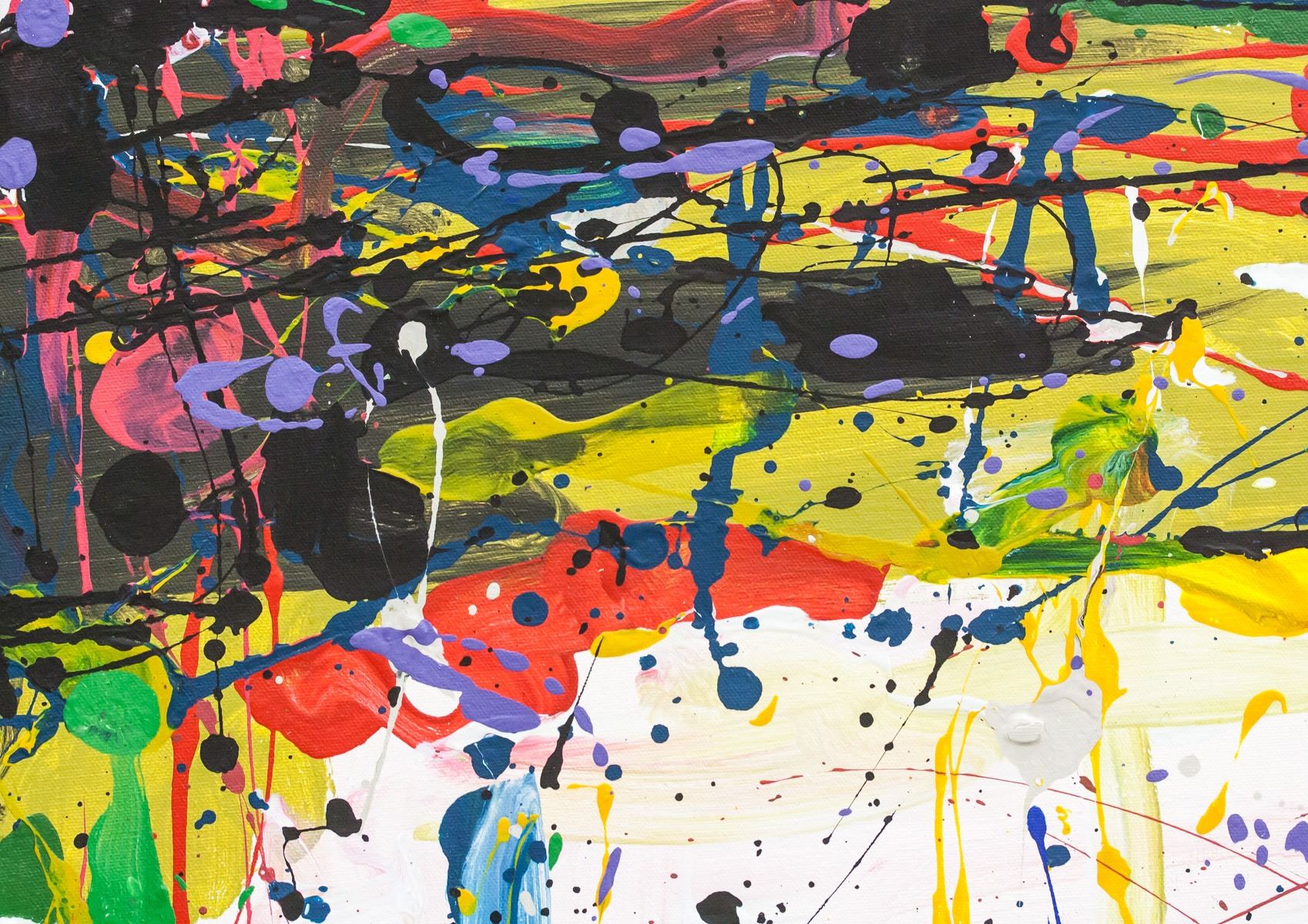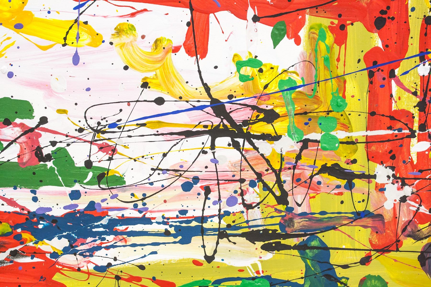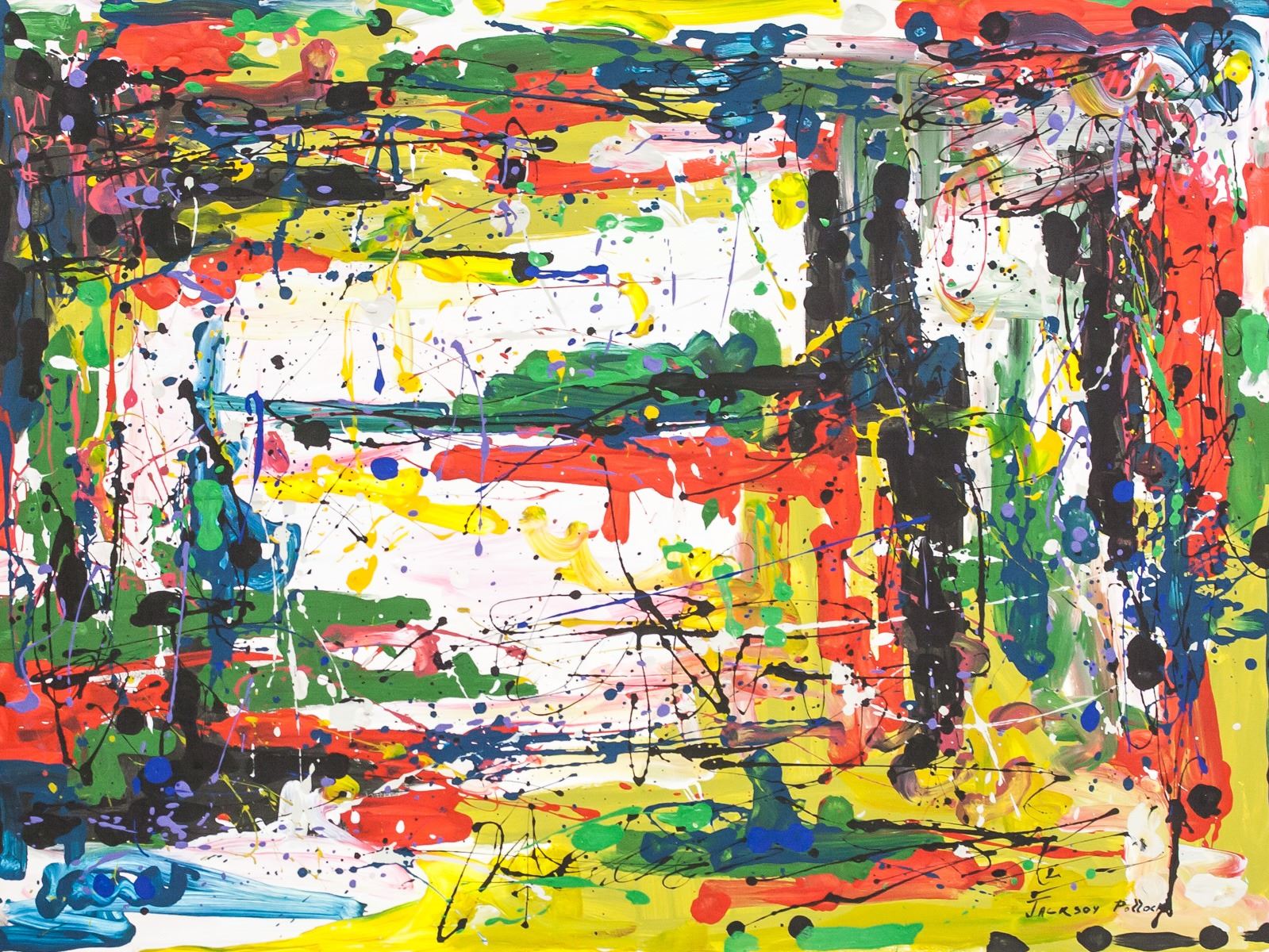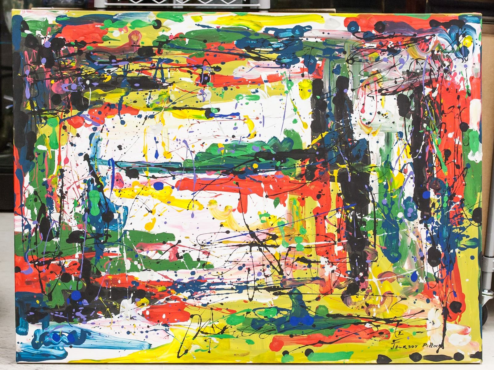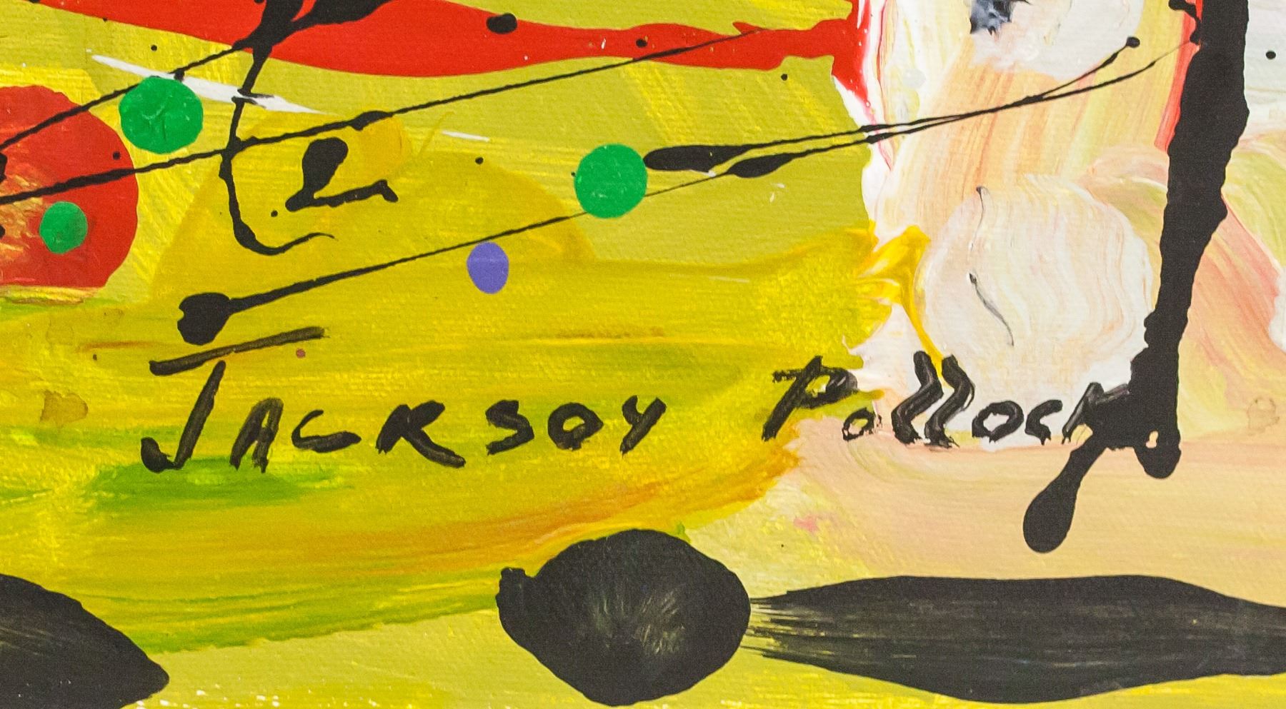 Acrylic on canvas. Featuring an abstract expressionist composition. Signed Jackson Pollock on the lower right corner. Style of Jackson Pollock (1912-1956, American). 91 x 123 cm (36 x 48 inches). Provenance: This lot carries limited provenance from a Toronto estate