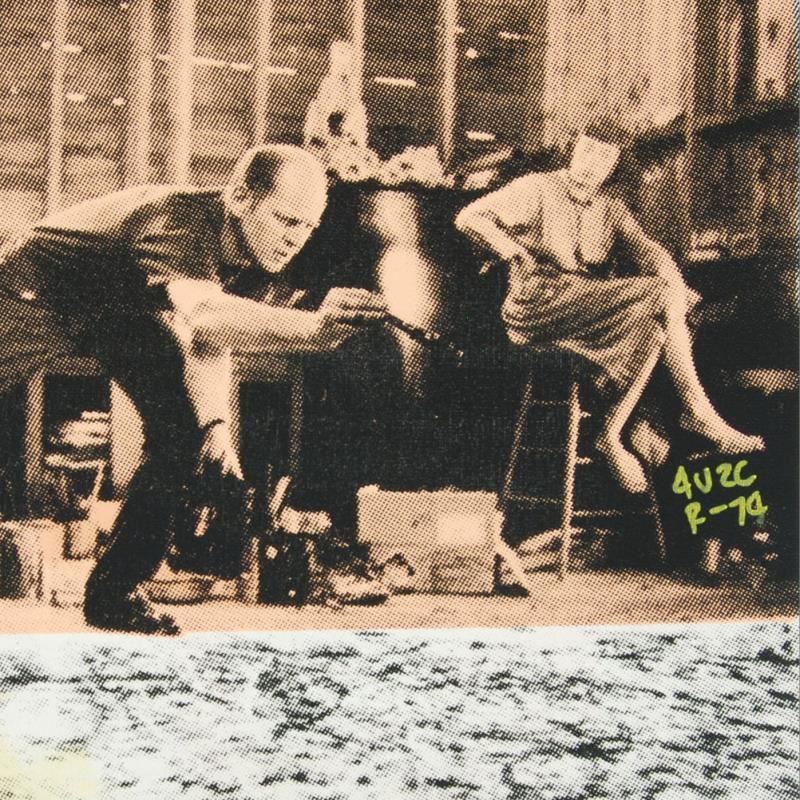 "Jackson Pollock at Work" is a one-of-a-kind hand-pulled silkscreen and mixed media painting on canvas by Ringo. This piece is hand signed by the artist and comes from the Andy Warhol Legacy Series. Includes Certificate of Authenticity. Due to the nature of the canvas, these pieces will need to be mounted for framing. Measures approx. 16" x 16" (image).