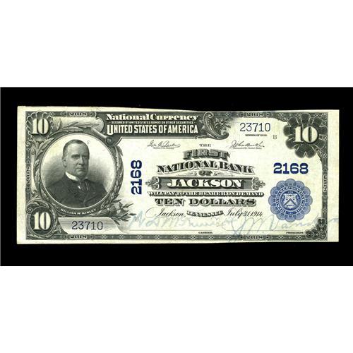 <B>Jackson, TN</B></I> - $10 1902 Date Back Fr. 623 <B>The First NB </B></I> Ch. # 2168<BR>This note has excellent stamped signatures along with problem free margins. <B>Very Fine-Extremely Fine.</B></I>