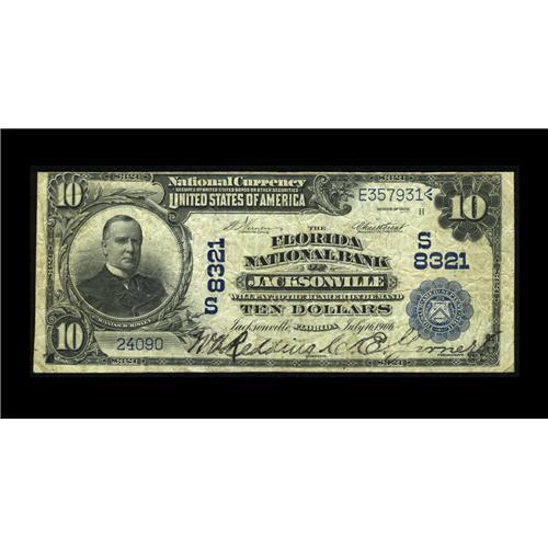 <B>Jacksonville, FL</B></I> - $10 1902 Date Back Fr. 618 <B>The Florida NB</B></I> Ch. # (S)8321<BR>This is a pleasing <B>Fine</B></I> Date Back with clear signatures.<BR><BR><b>Shipping:</b> Coin/Currency (<a target="_blank" href="http://www.heritageauctions.com/common/shipping.php">view shipping information</a>)