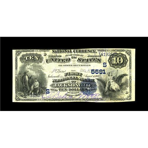 <B>Jacksonville, TX</B></I> - $10 1882 Date Back Fr. 545 <B>The First NB</B></I> Ch. # (S)5581<BR>A nice $10 Second Charter Date Back from this none too common bank. <B>Very Fine,</B></I> trimmed just a bit close at the top margin.<BR><BR><b>Shipping:</b> Coin/Currency (<a target="_blank" href="http://www.heritageauctions.com/common/shipping.php">view shipping information</a>)