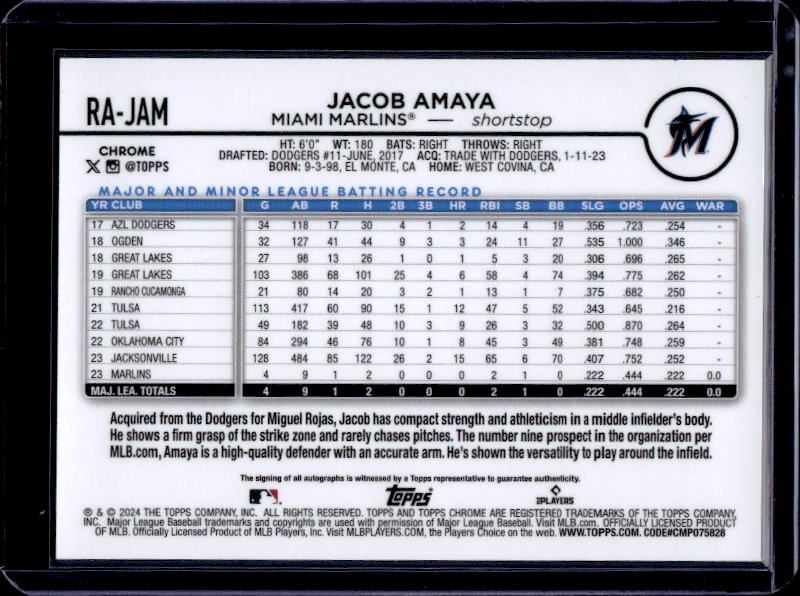 Jacob Amaya On Card Rookie Auto 2024 Topps Chrome #RA-JAM