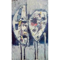 Jacob Bornfriend (1904-1974)Oil on canvas,"Two White Tables",Signed,51 x 31.5 ins. £700-1,000