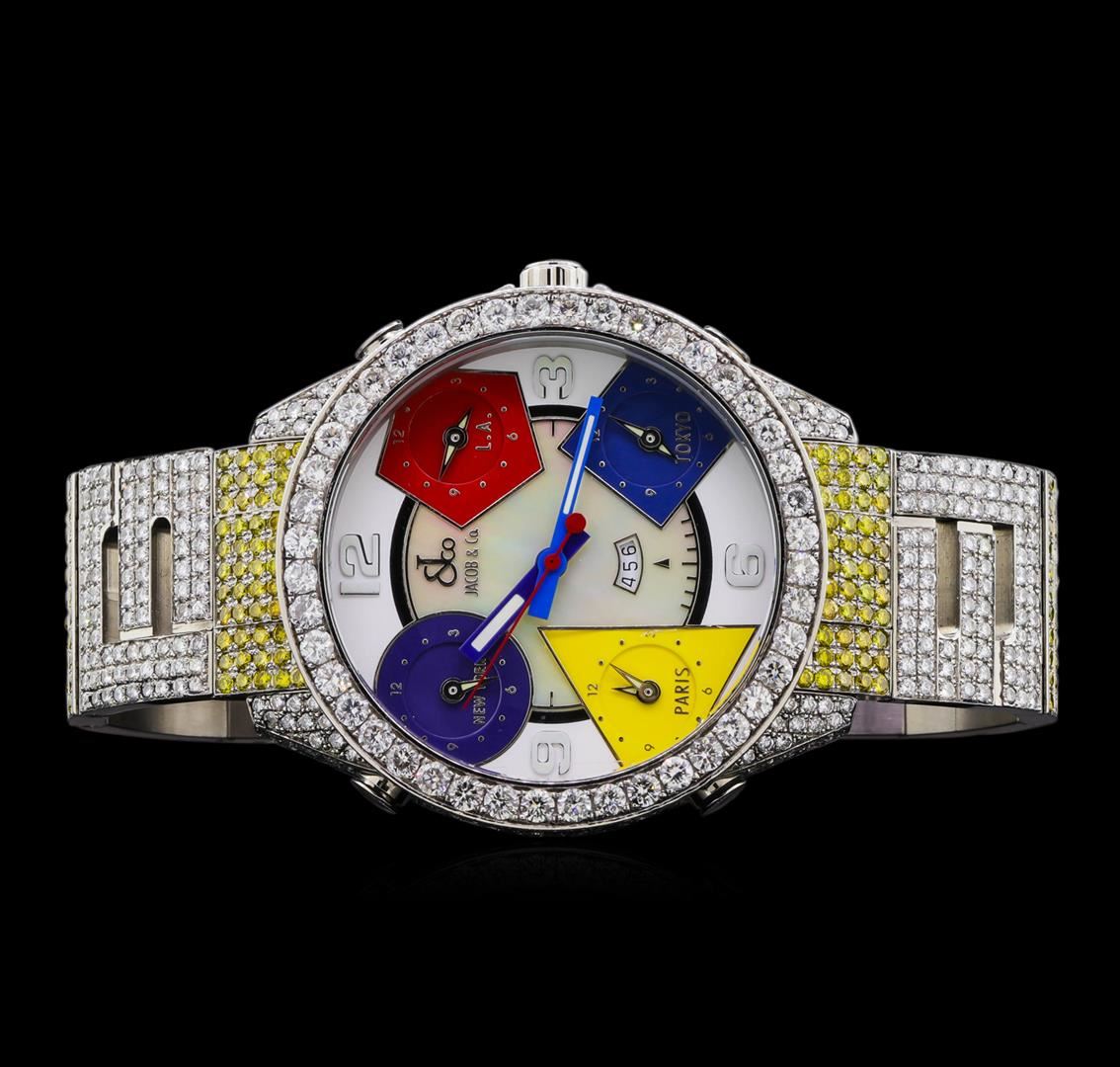 One Jacob & Co. watch featuring: Case: Stainless steel set with diamonds. Bezel: Stainless steel set with diamonds. Dial: White mother of pearl color. Bracelet: Stainless steel set with diamonds.