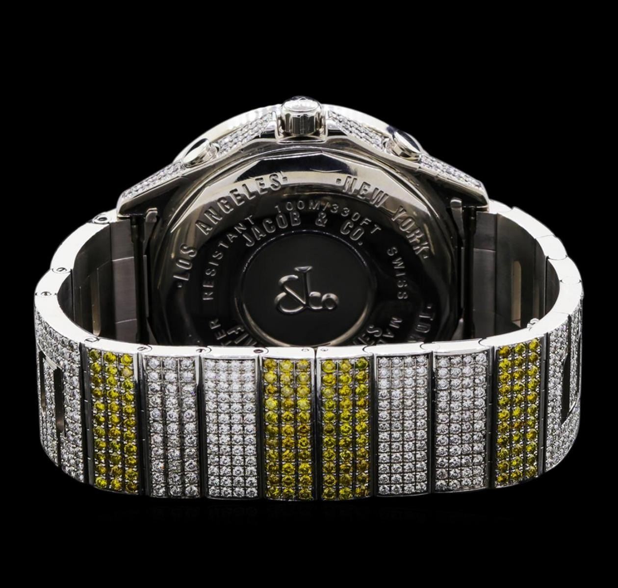 One Jacob & Co. watch featuring: Case: Stainless steel set with diamonds. Bezel: Stainless steel set with diamonds. Dial: White mother of pearl color. Bracelet: Stainless steel set with diamonds.