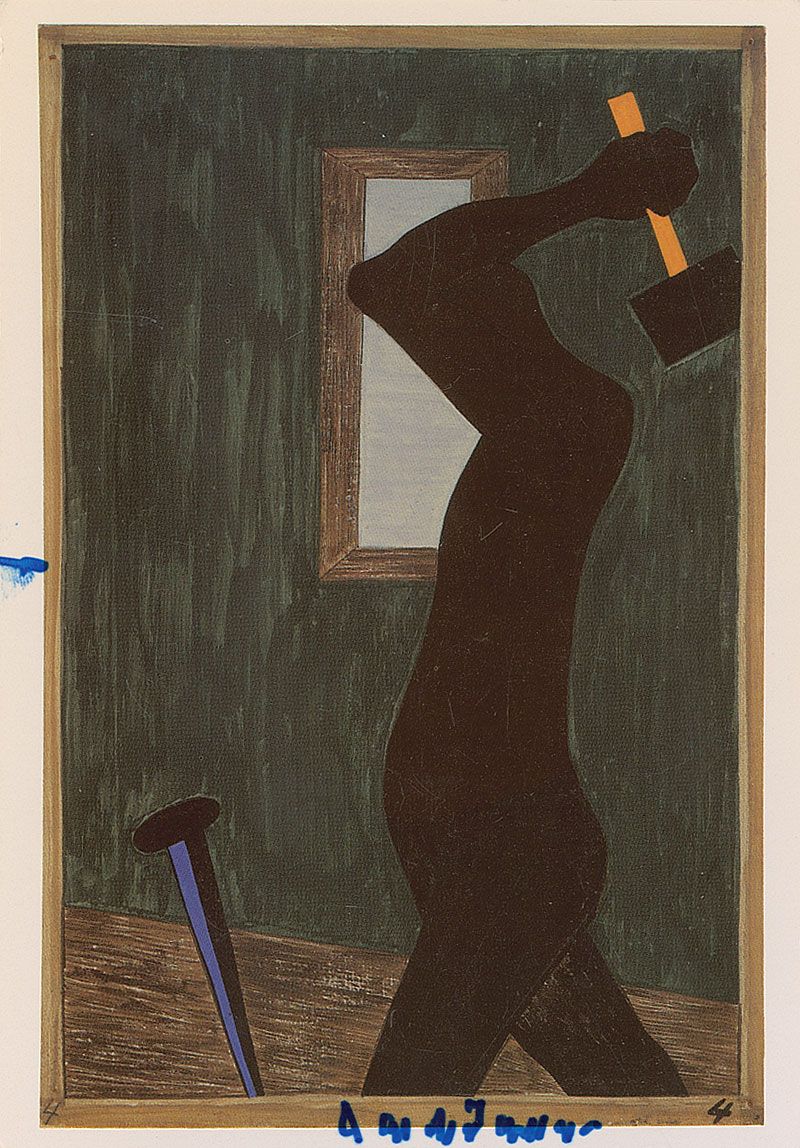 Two color postcards of Lawrence’s works, 4.25 x 6, each signed at the bottom in felt tip, one dated November 29, 1976, and the other signed much later. In overall fine condition.