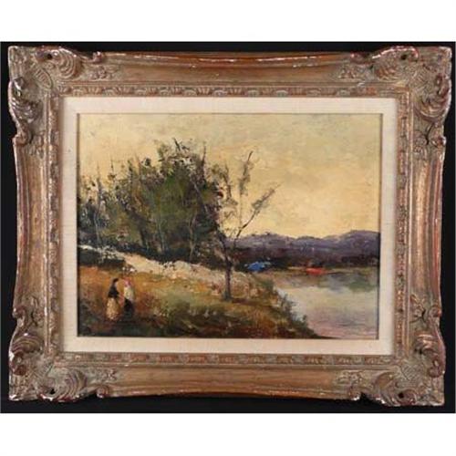 Jacob W. Gates (1903-1997) Lakeside Oil on Board Signed lower left 12" x 15 1/2"