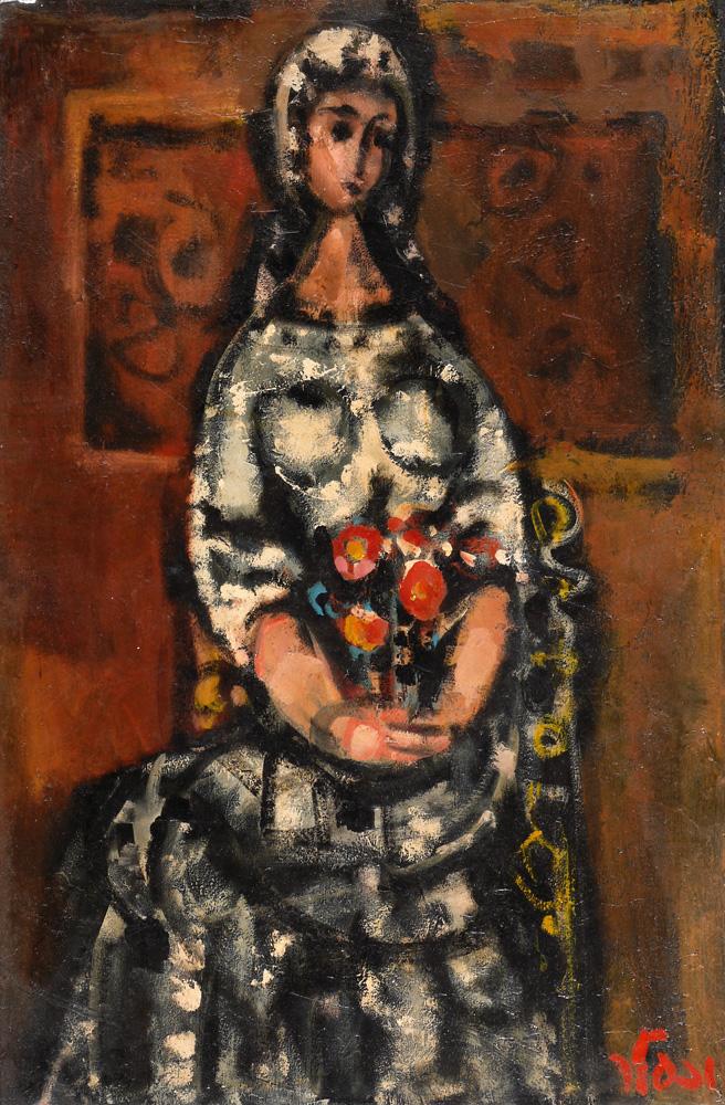 Jacob Wexler, Israeli Art, 1912 - 1995, Bride with Bouquet of Flowers, Oil on cardboard, 71x47cm, Signed., , , , ,