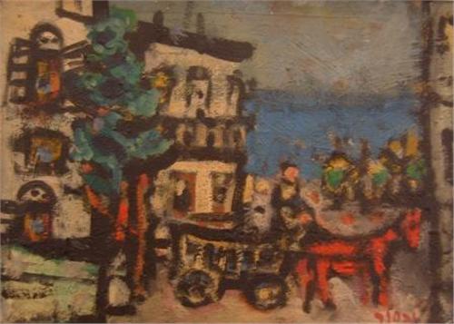 Jacob Wexler, 1912 - 1995, Cachman in Haifa, Oil on canvas, 26x37 cm, Signed., , , , ,