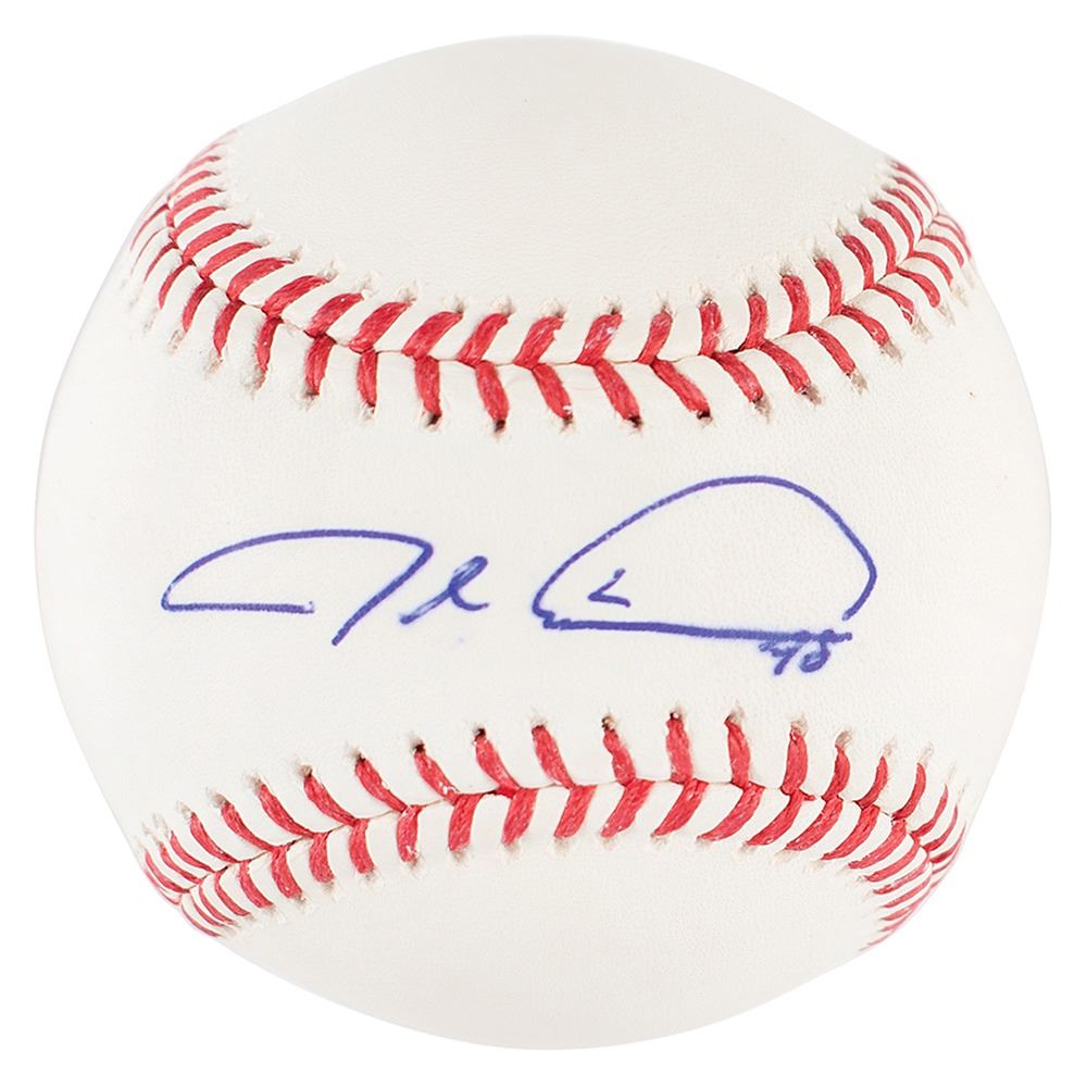 Official Rawlings Major League (Manfred) baseball signed in blue ballpoint on the sweet spot by two-time Cy Young Award winner Jacob deGrom. In very fine condition, with a JSA label affixed to the rear. Accompanied by a certificate of authenticity from JSA.