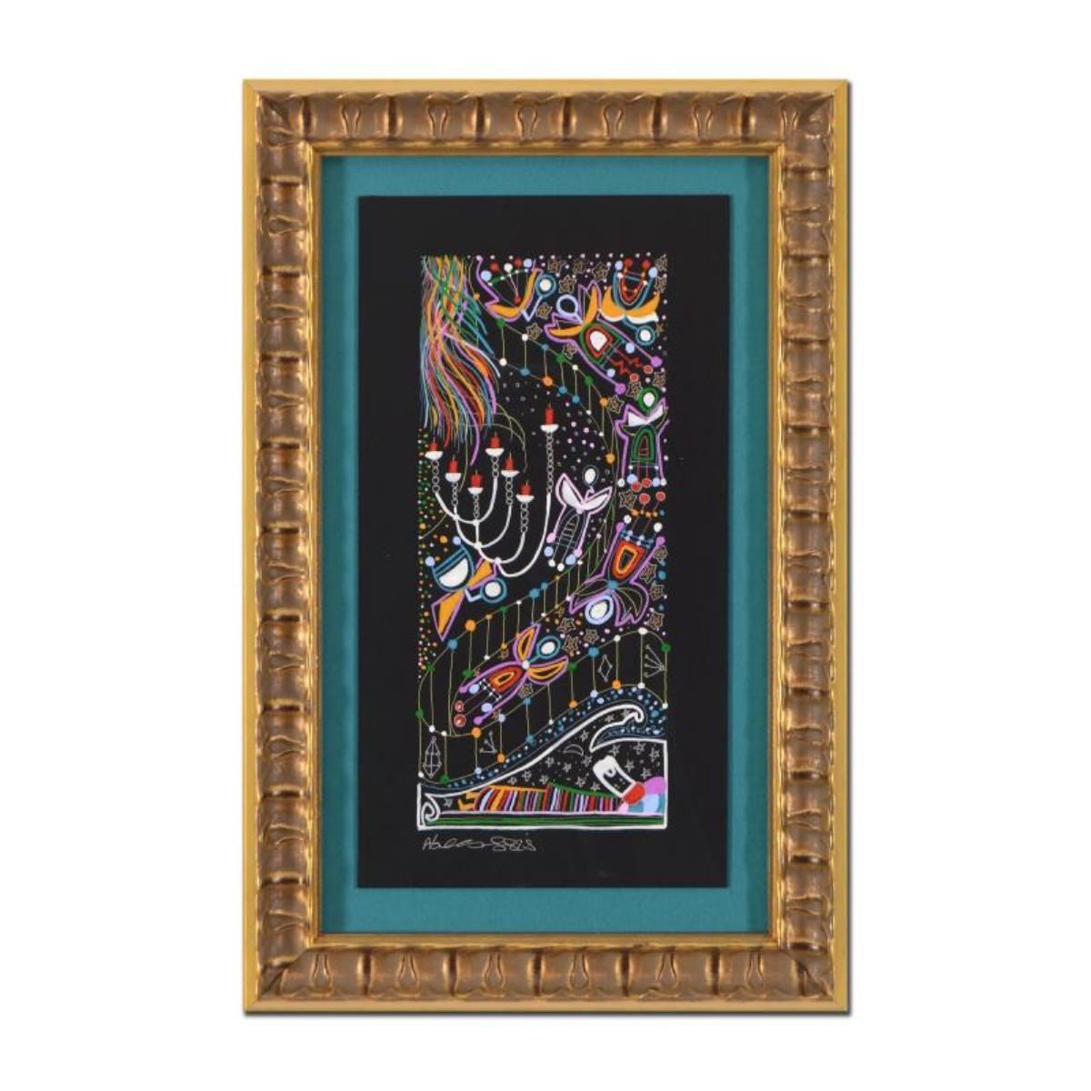"Jacob's Dream II" is an original painting, gouache on board, by Raphael Abecassis. Hand signed by the artist, this piece comes framed and with a certificate of authenticity. Measures approx. 11" x 5" x 0".