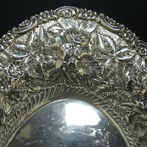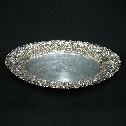 Jacobi & Jenkins sterling silver oval bread tray; repousse rim; flat bottom; 1894-1908; 1" high x 12 1/4" x 6 3/4"; 12.2 oz (surface scratches)