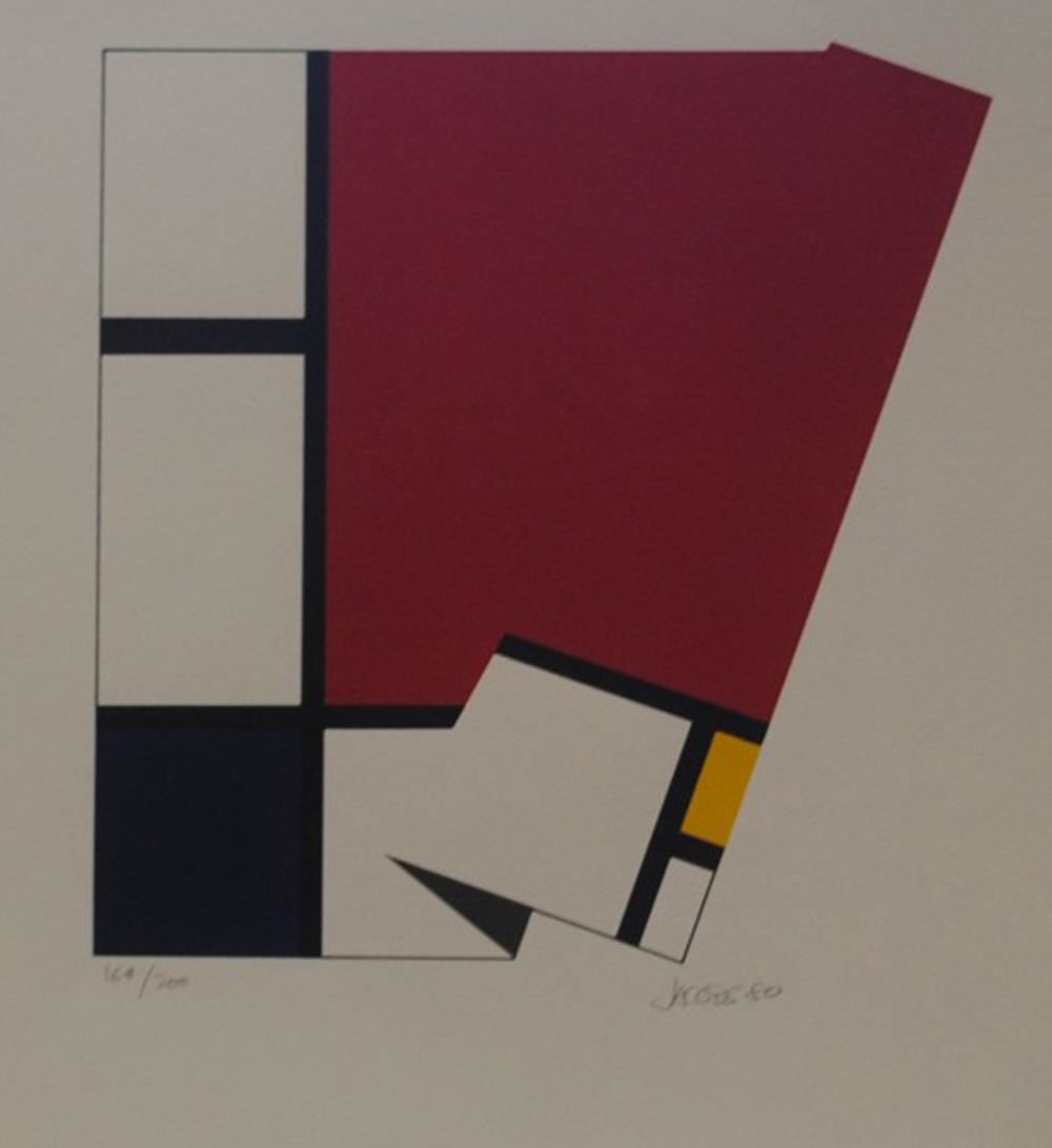 Jacobs' "Homage to Mondrian" serigraph signed and numbered 164/200. This serigraph is in excellent condition and has never been framed.