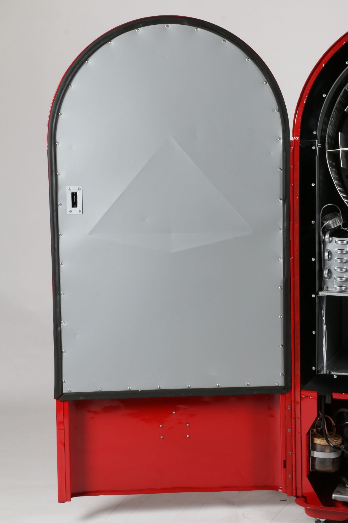 American. Circa 1950. F.L. Jacobs Co. Model JSC-26. 55" x 28" x 20". Full cosmetic and mechanical restoration including decals, paint, chrome. Working. 1500-2500.