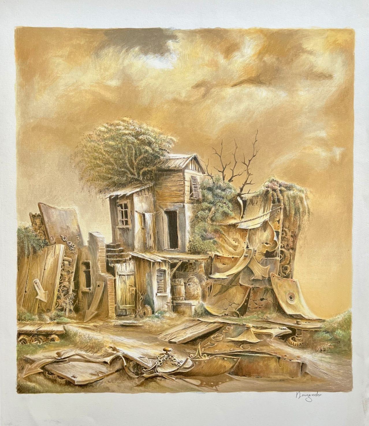 Jacov Nowogroder Old House Hand Signed Limited Edition Lithograph