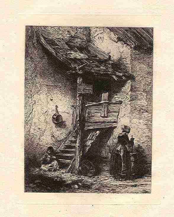 Jacque "A Rustic Stair" Original Etching. A Fine Impression On Watermarked Cream Laid Paper Printed In 1880 For Philip Gilbert Hamerton's Very Scarce "Etching And Etchers", Published In An Edition Of 1000. Plate Size: 7 1/4 X 5 1/2 Inches (185 X 140mm) With Good Margins. - Professionally Framed & Matted - Comes With Certificate - -